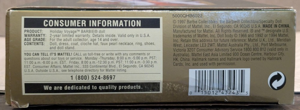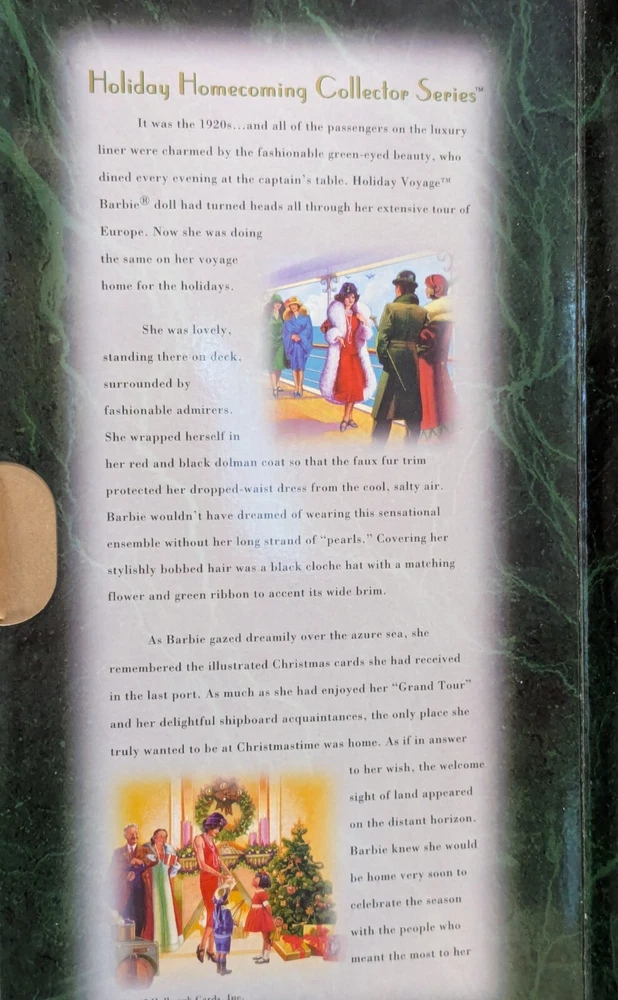 Step back into the Roaring Twenties with the exquisite Holiday Voyage Barbie Holiday Homecoming-1920’s Flapper (Model #18651). This stunning, mint-in-box collectible captures the spirit of the Jazz Age, with Barbie dressed in a glamorous flapper ensemble complete with a sparkling beaded dress and feathered headband. Her elegant look is complemented by the rich details of the 1920s era, making this doll a true work of art. In pristine condition, still sealed in its original packaging, this doll is a sophisticated addition to any collection, embodying both timeless beauty and vintage charm.