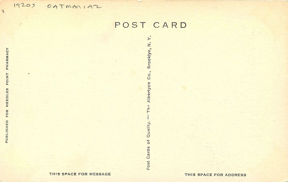 A Vintage Printed postcard as described in title, additional info is below-- Publisher-photographer--Artist---Albertype, Needles point Pharmacy card #----- no All our cards are shipped in either, a card stiffened envelope, or packages valued at $24.99 and up will be in a Rigid Shipping Envelope.