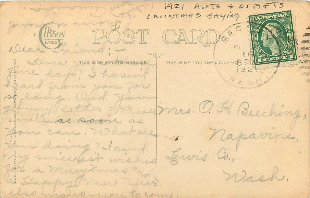 Home1921 Arts & Crafts Christmas Saying artist impression Postcard 26-93