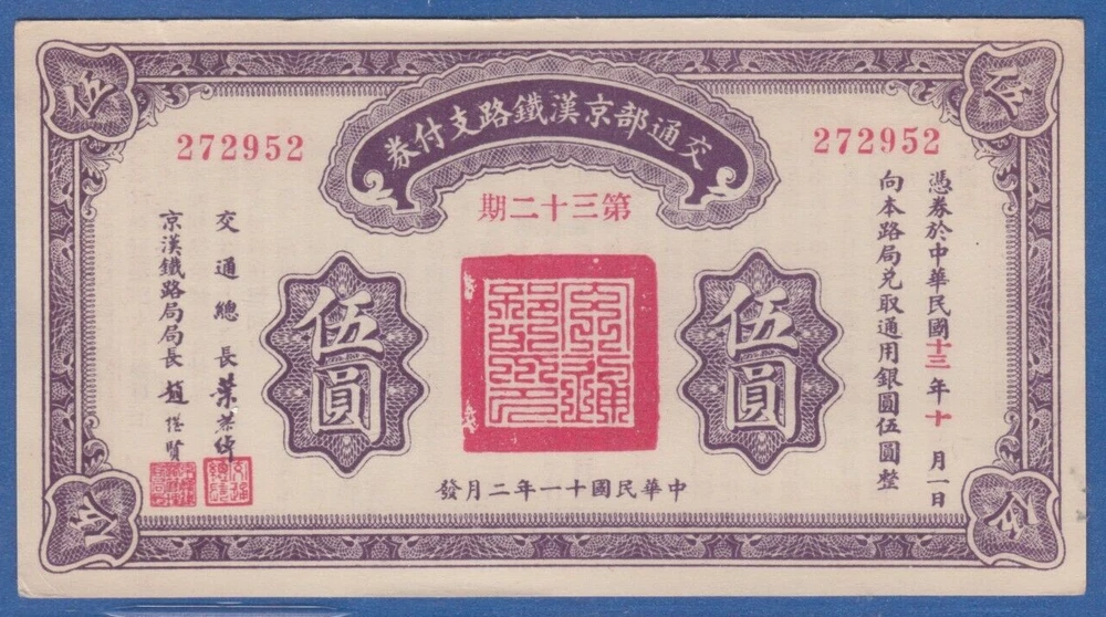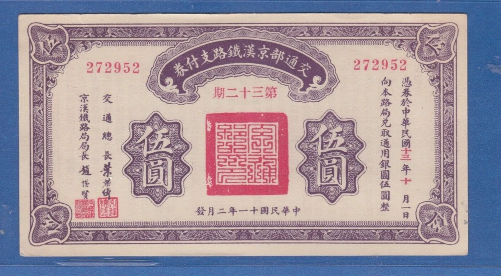 1922 China 1 Dollar Peking Hankow Railway (Ministry of Communications China Circulated 1 Dollar Peking Hankow Railway Ministry of Communcations Nice Looking See Picture. Buy will pay $4.30 shipping and handling. Shipping in U.S Only