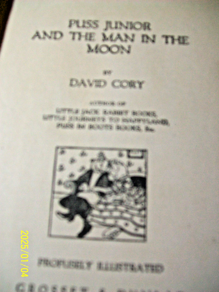 101 YEAR OLD CHILDREN's BOOK, original 1922 HARDBACK PUSS-IN-THE BOOTS,JR. AND THE MAN IN THE MOON .BY DAVID CORY, GROSSET & DUNLAP PUBLISHERS written on bottom end of binding. I Inside cover page reads " PUSS JUNIOR AND THE MAN IN THE MOON copyright, 1922, by Harper & Brothers Printed in the U.S.A.". 133 story pages, large children print , many illustrated color drawing and b/w engravings in excellent condition. . There are no torn or turned down pages. The bright red book cover has faded in places. Original owner's family selling. Estate. Thank you for looking. Media Ship.