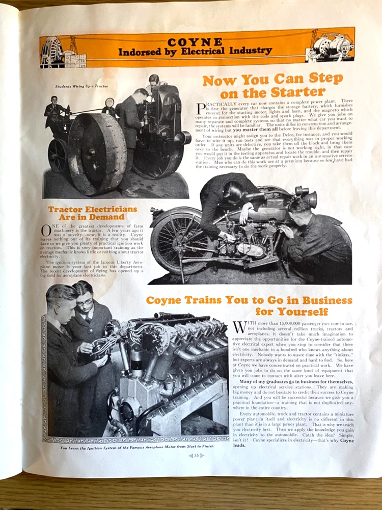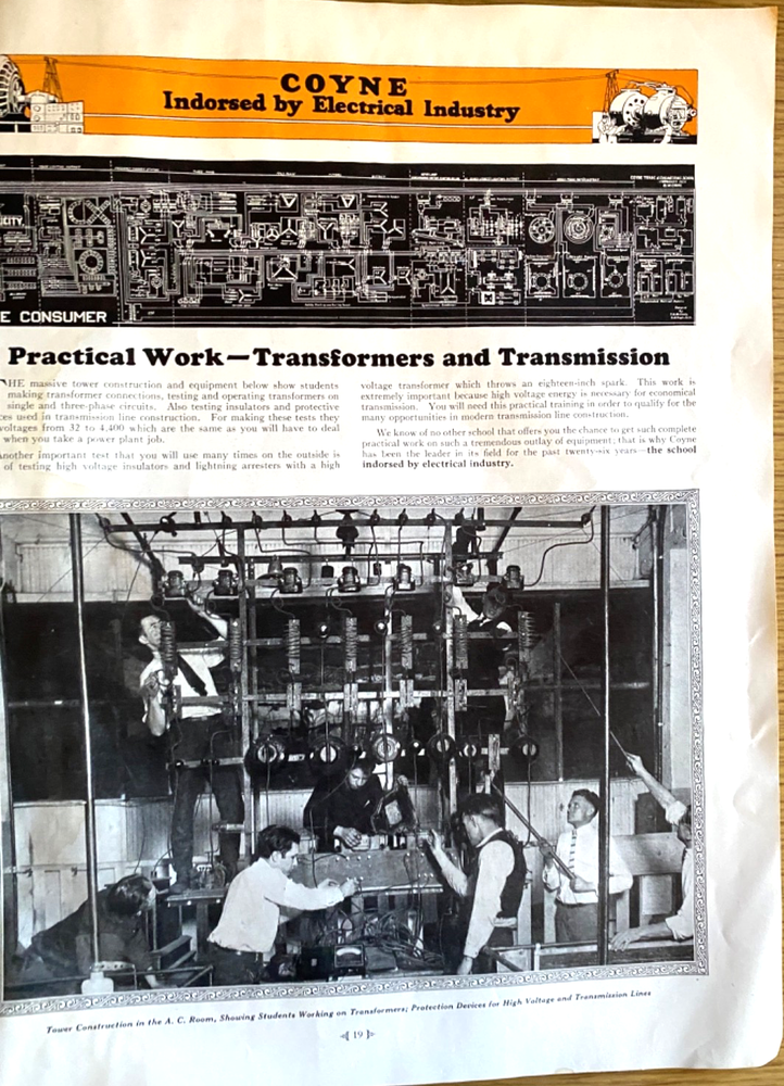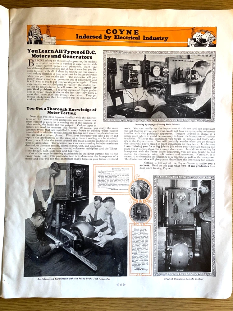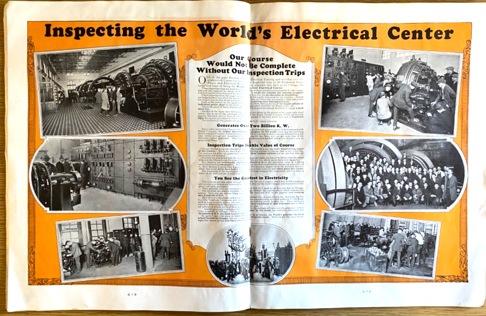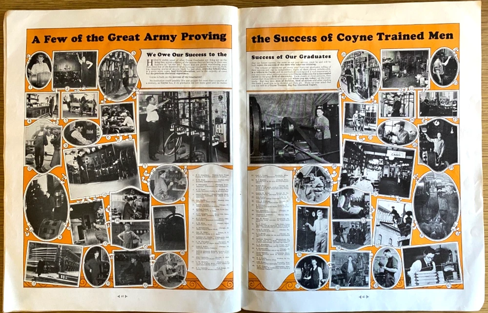 Coyne Electric School Antique advertising booklet 1923 Trade school for training electricians Chicago, Illinois Size is 12" x 15" inches – 48 pages Visit our store for 2,000+ items – Thank You!