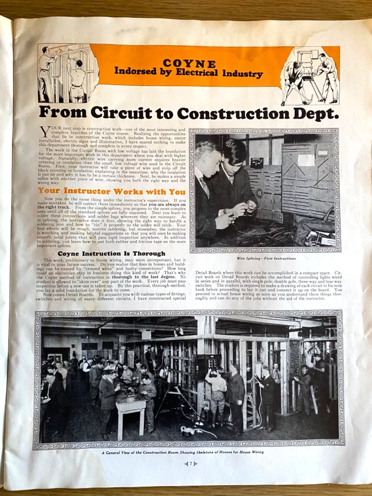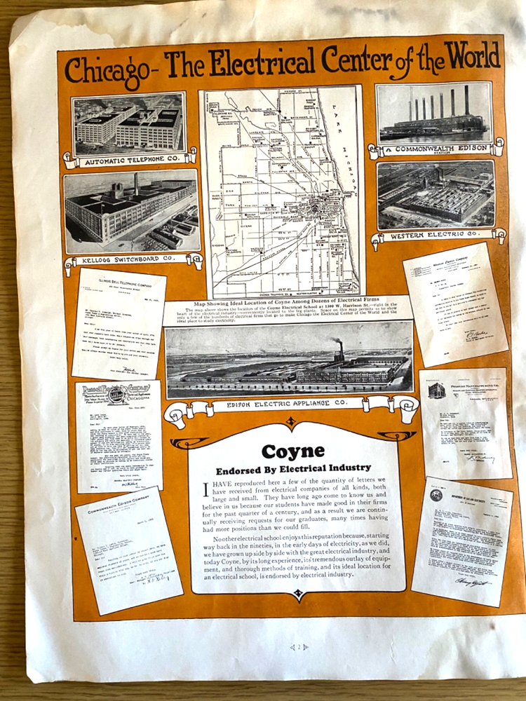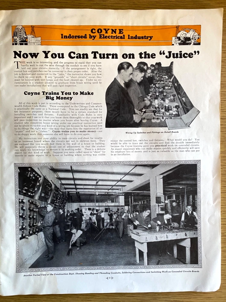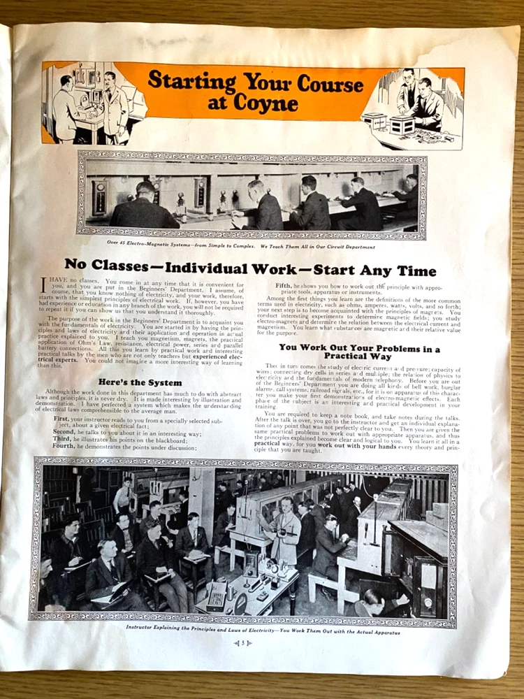 Coyne Electric School Antique advertising booklet 1923 Trade school for training electricians Chicago, Illinois Size is 12" x 15" inches – 48 pages Visit our store for 2,000+ items – Thank You!