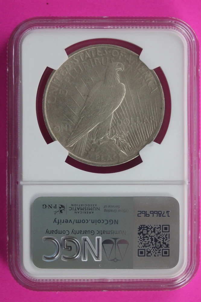 Brand/Mint: U.S. Mint Fineness: 0.900 Strike Type: Business Grade: MS 64 Total Precious Metal Content: .7734oz Country/Region of Manufacture: United States Seller Notes: “You will receive the exact same coin in the pictures. The background I use for pictures is colored.” Brand: US Mint Certification Number: na Certification: NGC Year: 1924 Coin: Peace Silver Dollar Precious Metal Content per Unit: .7734oz Composition: Silver