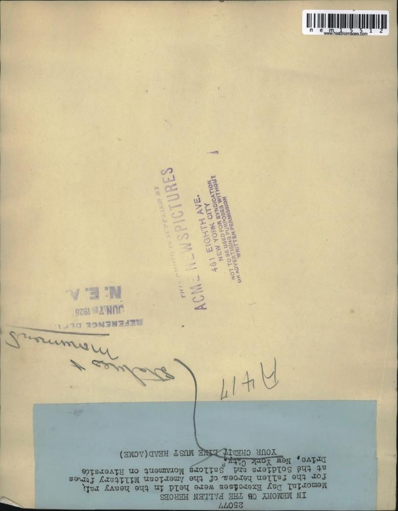 ebay template Note: Please study the images carefully to determine the condition of this vintage photograph, as it may not be in perfect condition. It may contain wrinkles, cracks, and possibly even tears due to its age and how it was handled before it got to us. A scanner may interpret colors and contrast differently than human eyes will, so it is possible that the actual photograph may be slightly darker or lighter in person. This vintage photograph is offered for sale as a collectible item and conveys no transfer of copyright. 1926 Press Photo a crowd stands in rain at the Soldiers and Sailors Monument NYC This is an original press photo. Memorial Day Exercises were held in the heavy rain for the fallen heroes of the American Military forces at the Soldiers and Sailors Monument on Riverside Drive, New York City.Photo measures 8 x 10.25inches. Photo is dated 06-07-1926. PHOTO FRONT PHOTO BACK Historic Images Part Number: nem15512 FAQs Q: Can I just download a digital version instead? A: No, we sell only vintage originals and do not make or distribute any copies, including digital ones. Q: Do you combine shipping and invoices? A: Multiple photos won on the same seller ID combine automatically through the eBay checkout process. If you encounter problems with this, send us a message via eBay messaging and we will send you an invoice. Due to eBay limitations, we cannot combine items won on our different seller IDs for a single shipping charge. Q: How quickly do you ship the items once paid? A: We ship within one business day after your payment clears. If you do not receive an "order shipped" email from us by the close of the second business day from submitting payment, please e-mail us via eBay messaging. Q: How do you make sure my photograph arrives safely? A: We package each order between two cross-corrugated pieces of cardboard to ensure that the package is as difficult to bend as possible. We then wrap each order in a plastic sheet to help protect against moisture. We want you to rest assured that we take every precaution to ensure that the photograph you receive will be in the same condition in your care as it was in ours. Q: Will the "Historic Images" watermark be on my photo when I receive it? A: No. This is a digital watermark we use to protect our images. It is not printed on the photo. Q: What are your office hours? A: eBay for us is a business, and a very fun one to be in! We are open M-F 9 to 5 (CST). Therefore, we do not return e-mails and phone calls over the weekend. We observe the following holidays: New Years Day, Memorial Day, Fourth of July, Labor Day, Thanksgiving and the day after Thanksgiving, Christmas Eve and Christmas Day. Q: Where did all these vintage photos come from? A: These original vintage photographs are from various news service and newspaper photo archives from locations around the country including: Boston, Detroit, Tampa, Chicago, Denver, Seattle, New Orleans, Milwaukee, Portland, Spokane, and more. We do not copy or reproduce any photographs -- every item is a unique vintage piece that was housed in a news archive. Q: Can I use this photograph in my book/blog/website? A: The short answer is no. There is no transfer of copyright for republication or reproduction with these photographs when you purchase them, and only photographs taken before 1923 are currently automatically in the public domain. Permission from the copyright holder, which usually can be identified from the back of each photo, must be sought to republish or reproduce the image for any purpose. Q: Do you relist items (in case I miss an auction ending)? A: Auction items that receive no bids are relisted in our store (historicimages-store on eBay) as a fixed-price item and at a higher price than the starting auction price. Q: Do you leave feedback? A: Yes, we always leave feedback for buyers. Our software monitors when our buyers leave us feedback, then notifies us that we can leave feedback for the buyer. Rest assured, if you leave feedback, we will do the same! Check out our family of eBay IDs: historicimages01 Sports Photos historicimages02 Entertainment Photos historicimages03 Americana Photos historicimages04 International & War Photos historicimages05 Transportation Photos historicimages06 Photos of All Subjects historicimages07 Entertainment Photos historicimages08 Newsworthy Photos historicimages09 Entertainment Photos historicimages10 Sports Photos historicimages-store Our largest fixed-price selection historicimages-gallery Hand-picked photos Saturday night auctions About Us Historic Images was formed in September 2009, with a handful of scanners working out of a basement to digitize newspaper photo archives. We have since moved out of the basement, and we can now archive thousands of photos per day. Our company has worked with magazines and newspapers from Detroit, Boston, Denver, Seattle, Tampa, Chicago, and New Orleans, just to name a few. We are constantly adding to our inventory, and have assembled an archive of millions of photos to date. As our company evolved, we began our eBay business, which brings thousands of fresh auctions per week to the world's largest online auction marketplace. Our custom software systems and team of great employees allow us to efficiently scan and sell large photo archives online. At the very core of our company's DNA is a strong commitment to customer satisfaction and strict integrity for our product. Our promise to you is that we will do everything in our power to provide you a great buying experience. Copyright 2009 - Present, Historic Images, Inc. Sell Smarter with Kyozou. Inventory and Ecommerce Management