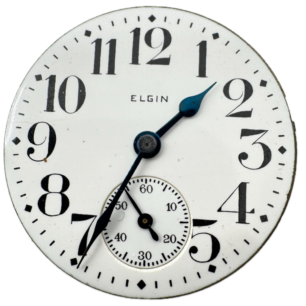 Vintage 16s 1927 Elgin 15 Jewel Mechanical Pocket Watch Movement 313 USA Product Description Item: Pocket Watch Movement Brand: Elgin Movement: Mechanical Production Year: 1927 Country: USA Jewels: 15 Jewel Gender: Men's Grade: 313 Size: 16s Product Measurements Diameter: 43mm Product Condition Overall Condition: Fair, overall condition for its age. Functions: Not running, the Balance staff is broken. Dial: The dial has scratches on it.