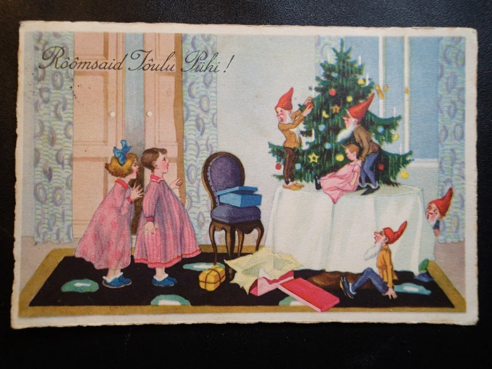 1927 GNOMES with KIDS VINTAGE CHRISTMAS POSTCARD ESTONIA ESTONIAN