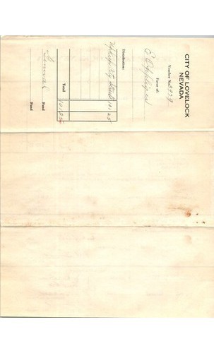 This 1927 City of Lovelock labor voucher documents a municipal payment to Emil Opplliger for twenty-two and a half days of labor performed at four dollars and fifty cents per day, totaling $101.25. Dated November 2, 1927, and officially approved for payment from the General Fund on November 15, 1927, this municipal finance document originates from Pershing County, Nevada, and provides a tangible record of early 20th-century civic administration and labor compensation. The form features pre-printed legal boilerplate requiring a sworn affidavit that the bill is just and correct and that no payment had been previously rendered, followed by certification from City Clerk 7.A Twigg and approval signatures from council members including B. Davim and F. C. Howard, illustrating the multi-tiered bureaucratic oversight characteristic of municipal governance during this period. The document serves as a significant artifact of Nevada's regional history, capturing the formal processes of municipal record-keeping during the late 1920s. The labor rate of $4.50 per day provides concrete economic data regarding wage standards for municipal work in rural Nevada communities between the world wars. The form's structure, with designated sections for notarization, city clerk certification, and council approval, reflects established protocols for municipal expenditure accountability. As an example of governmental ephemera, this voucher embodies the material culture of public administration, documenting both the practical mechanics of civic finance and the individual labor that supported municipal operations in a specific Western American community nearly a century ago.