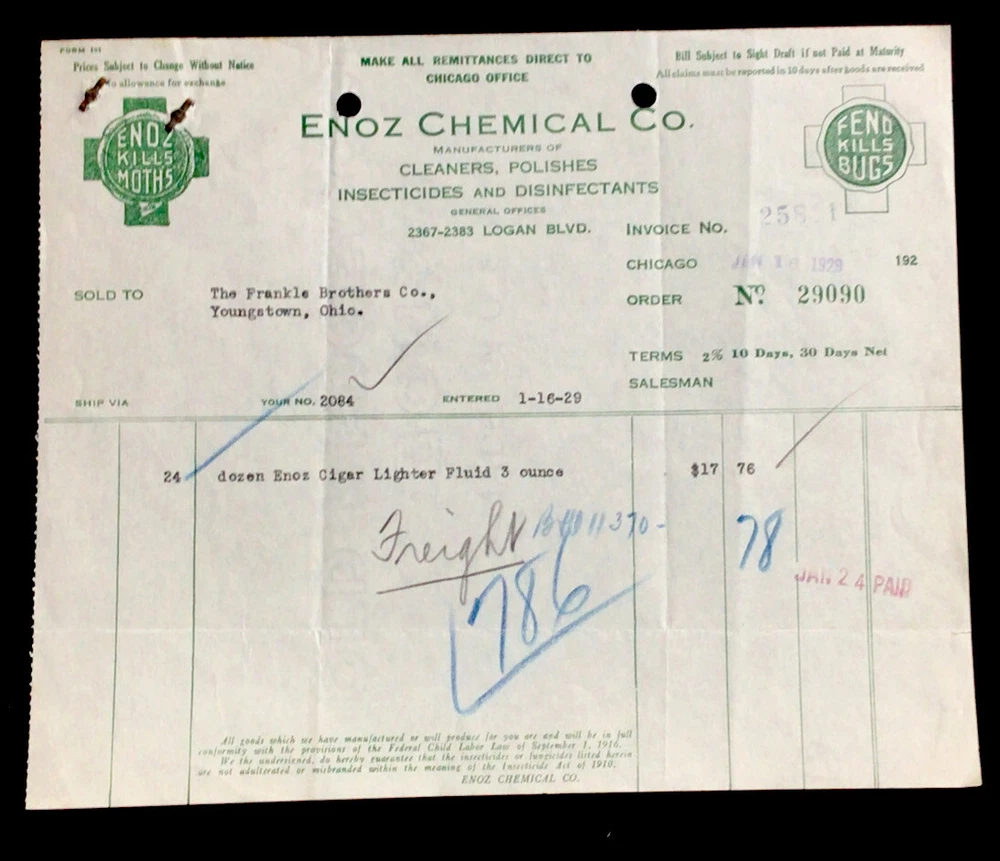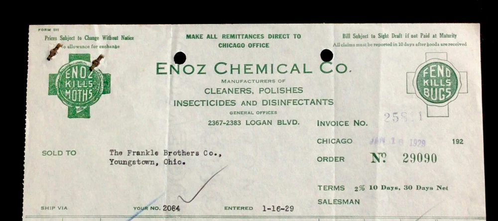 1929 Billhead Chicago Illinois Enzo Chemical Co insecticides polishers #b10.