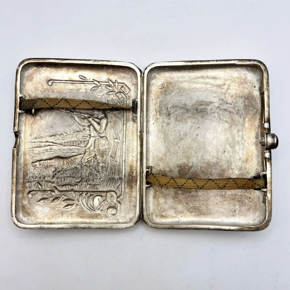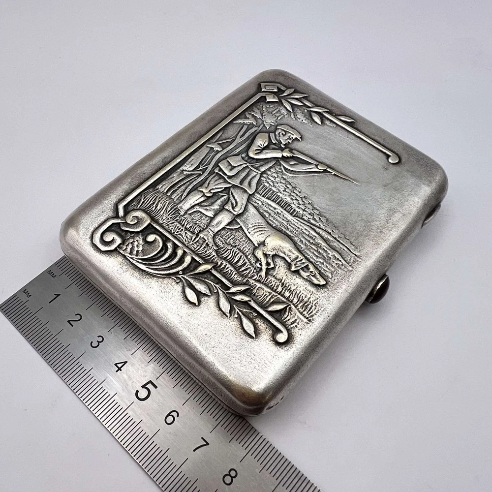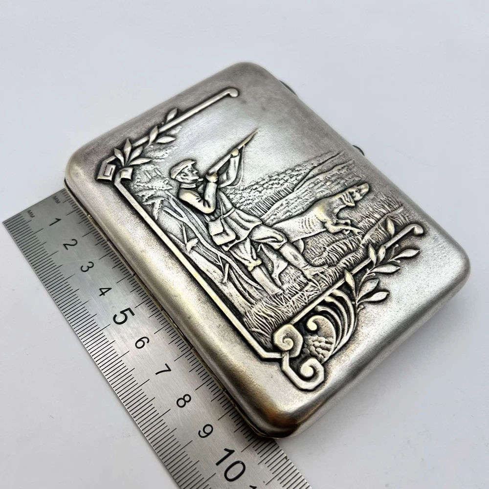 1930 Antique Collectible Cigarette Case Hunting Silver Plated Ruby Signed Dear collectors, I am o ffering a gorgeous piece from my ocean jewels collection! Unusual Antique Collectible Cigarette Case Hunting Silver Plated Ruby Signed Antique cigar case "Hunting" Rare collectible catalog cigar case of the USSR production "Hunter with a dog". Manufactured in the 1930s, the manufacturer's mark on the inner part of the sash: "Artil Peremoha Moscow". Embossed detailed image. The button is a synthetic ruby. The cigar case is made of cupric — this alloy imitates silver (silver-plated liatun). Well preserved. There are minimal traces of use, but there are no deformations, dents or corrosion. Very good clasp, closes tightly. The rubbers inside need to be replaced. There is a patina. The capacity is a standard pack of cigarettes (20 pcs). This is a great rare collectible cigar case. In very good used condition, please exam photos for all details. Dimensions: Material / Silver Plated Size / 8.5 x 10.7 cm / 3.3 x 4.2 in" Weight / 131 gr A lovely old case for any collector, it will glorify any house. This is a lovely item to own or to give as a special gift. Very beautiful. Great job. Good condition! Please review all photos closely, since they are a large part of my item description (all made with daylight, to show the color as authentic as possible). Shipping: I do ship worldwide by Registered mail With a tracking number! Shipping time takes up to 21 business days. All additional payments such as tax, are the buyer's responsibility. I ship only to the approved address that is registered in the buyer's account after payment received handling time: 3 Business days. return policy: I check each product and sell only the best quality products. In any case, if you are not satisfied with the product first, please contact me and I will do everything to your satisfaction. In any case, you have a 100% Guarantee and refund. I accepted within 14 days, In its original packaging and on condition the item in its original condition as received. buyer pays for shipping and all additional payments such as tax. feedback: I give immediate positive feedback to buyers as soon as payment is received for the purchase. In any case, of a problem contact me right away before leaving feedback so I will do my very best to resolve any problem, and to make you satisfied. Thank you for shopping