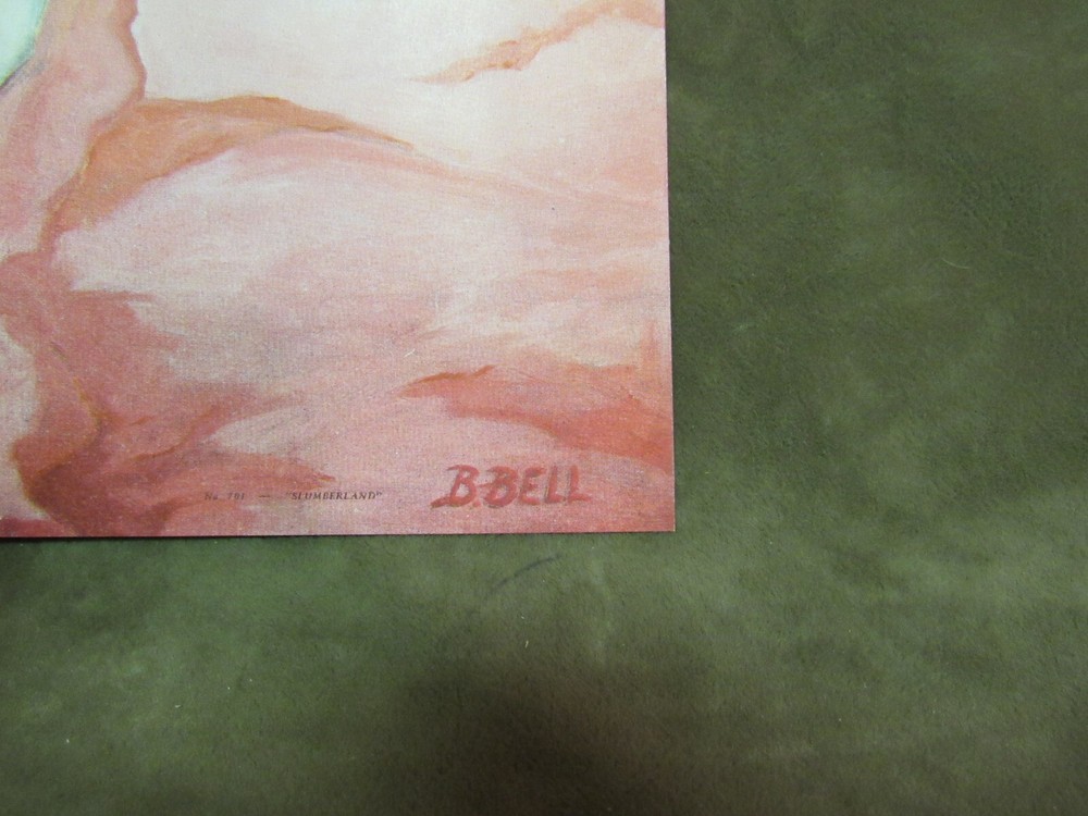 1930s B Bell Slumberland Art Print Chic Sleeping Baby Paper Frame Vintage