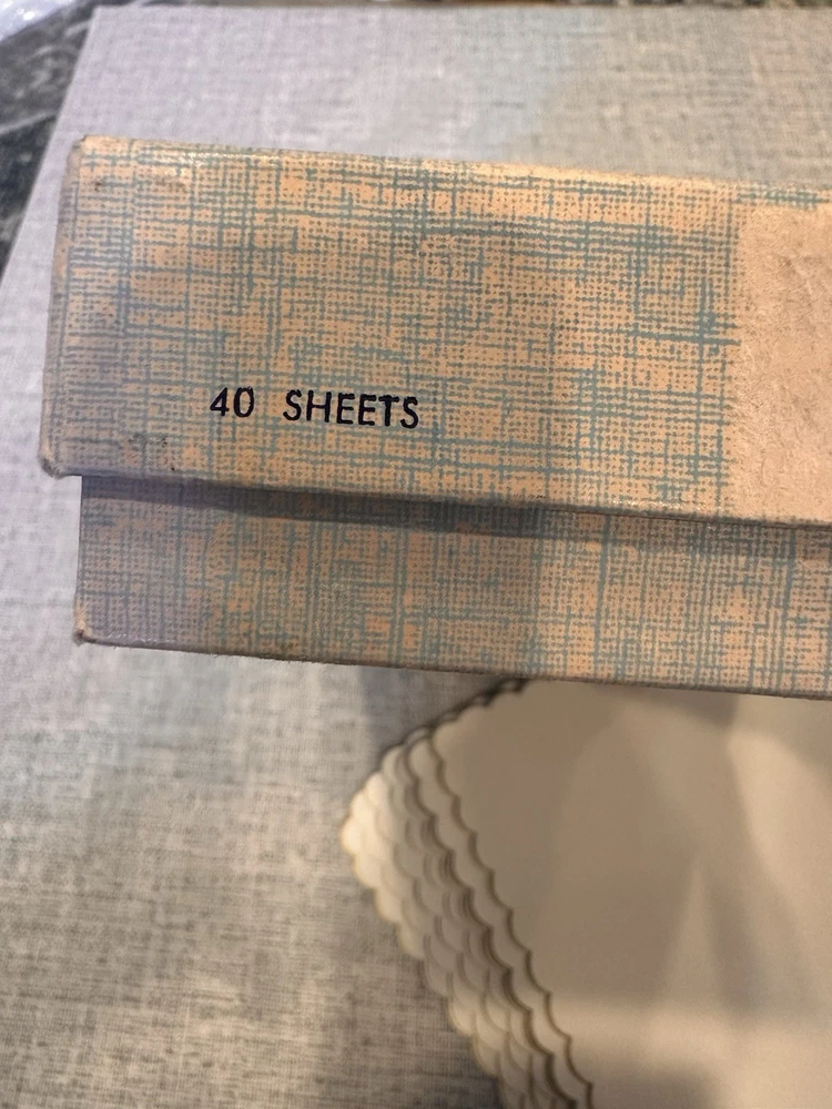 This product is a vintage 1940's box of stationary paper and envelopes, featuring 40 sheets of paper and 20 envelopes. This collectible set is a rare find for those interested in historical stationery items. The design and aesthetic of the paper and envelopes may reflect the fashion and style of the 1940’s, making it a unique and nostalgic addition to any collection. 2/26’