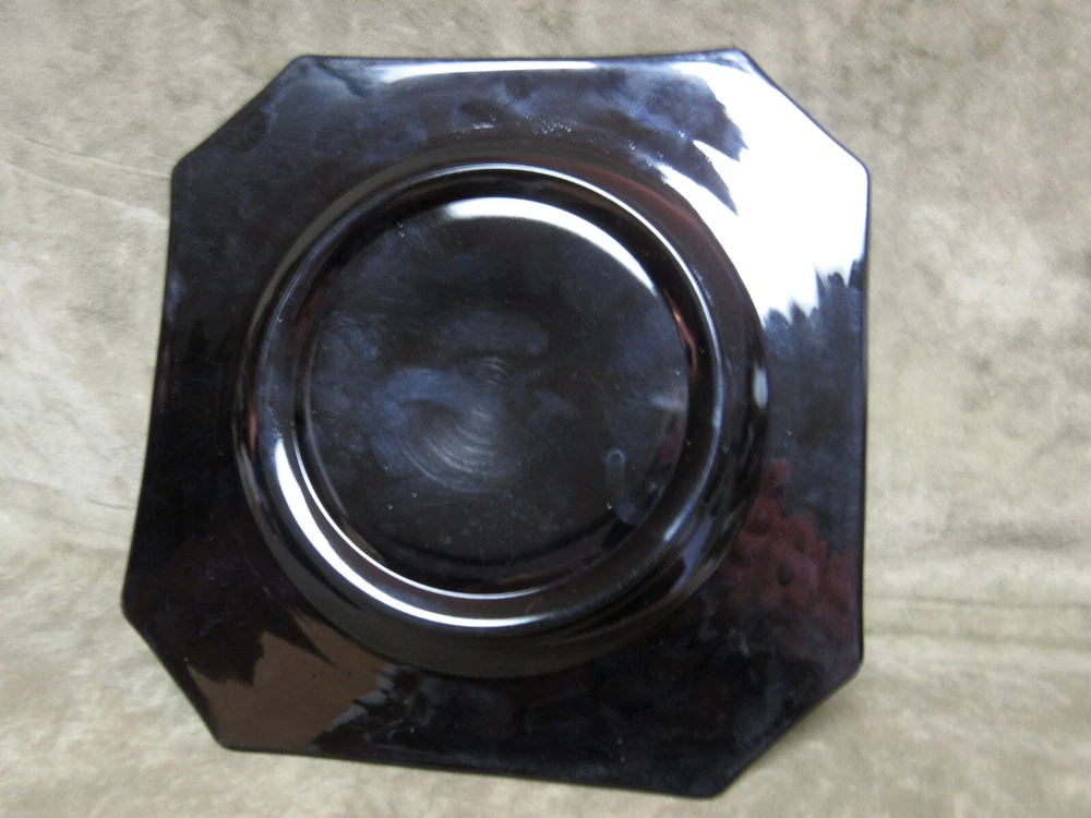 1930's McKee Black Amethyst Glass Clico Salad Plate Lot of 8 Pieces Art Deco