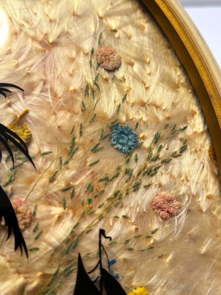 1930’s Silhouette Reverse Painting of a Sailboat and Palm Trees with a Unique Background made up of REAL Seeds and Flowers, made by Fisher. Oval measures approximately 10-1/4” inches tall and 8-3/8” inches wide. I have an entire collection of silhouettes I'm listing and will combine shipping for multiple purchases and refund the difference. Please look at all of the pictures and ask questions prior to buying. I will only ship to the lower 48 states for the cost provided in the auction, but can ship to AK, and HI for shipping costs. If you live overseas, please take advantage of eBay’s Global Shipping program. Check out my other Silhouettes on my eBay store: https://www.ebay.com/str/nosmustangparts