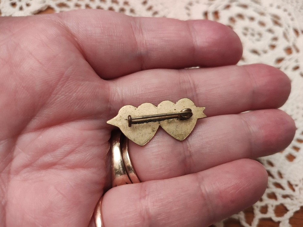 This 1930s-1940s vintage heart brooch pin in gold tone with a textured open sweetheart design is a classic piece of retro jewelry from the United States. Perfect for Valentine's Day or any occasion, this fashion accessory exudes a timeless charm and elegance. The pin features excellent cut grade and is a unique addition to any vintage jewelry collection, especially for those who appreciate the fashion trends of the mid-20th century. Marked Evelyn & Bill.