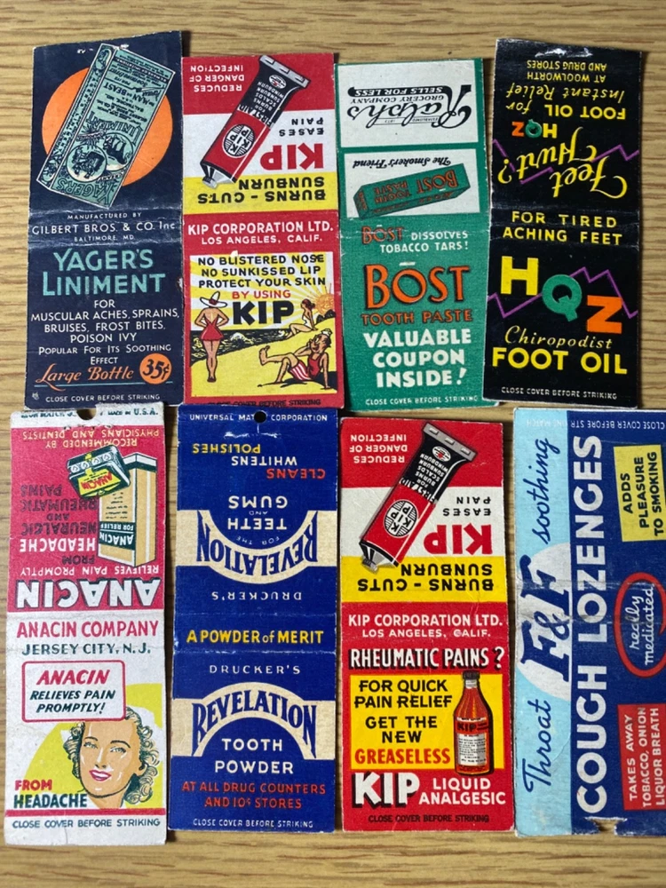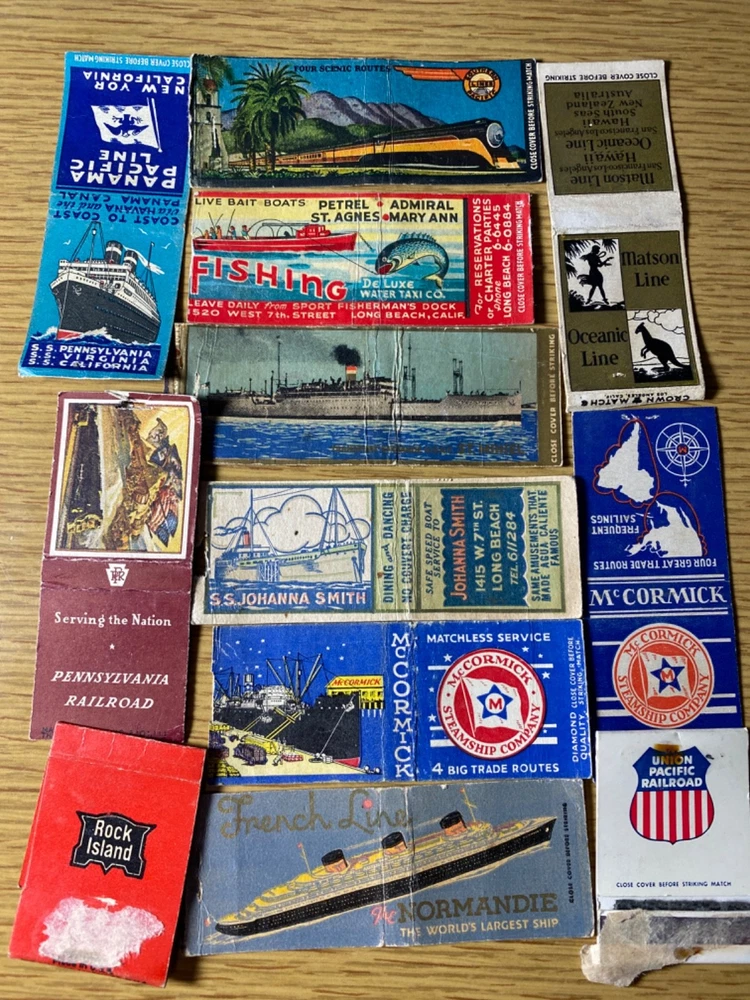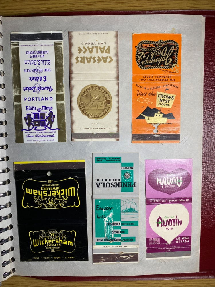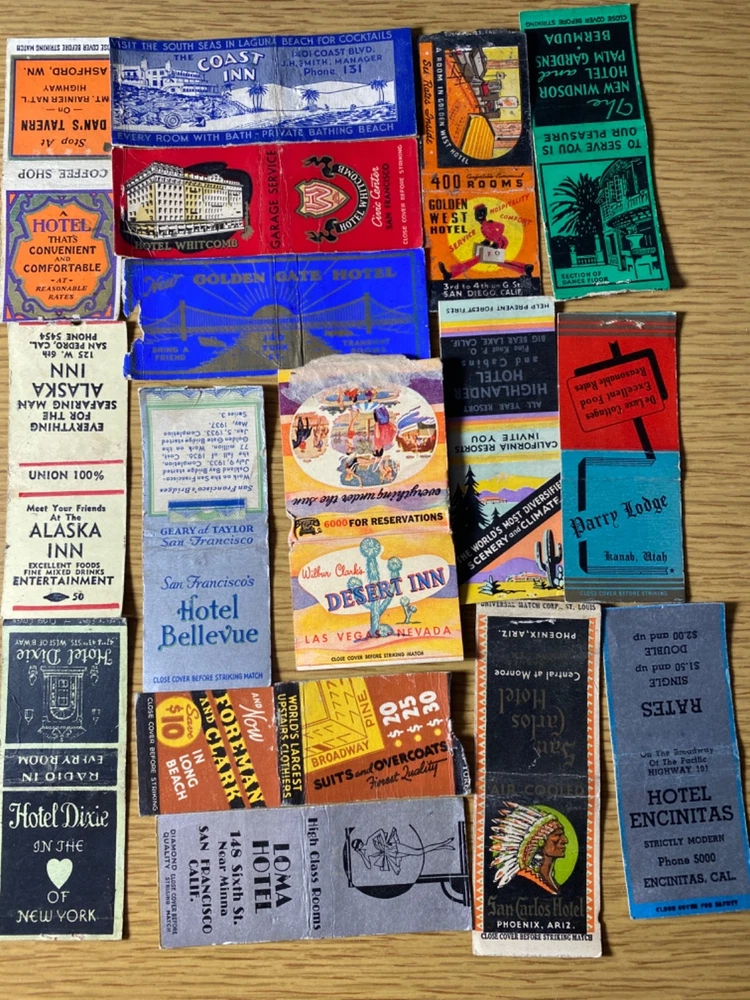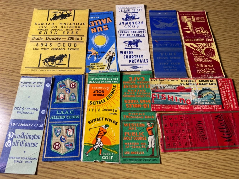 Huge collection of 417 Matchbook Covers Vintage advertising covers 1930s to 1950s • Restaurants and clubs • Automobiles, trains, airlines • Alcohol, colas, tobacco, food, candy • Sports, expositions, medical, military • Hotels, businesses, shaving, dog food, misc. Matchbook covers vary in size, very colorful, no matches included. Visit our store for 2,000+ items – Thank You!