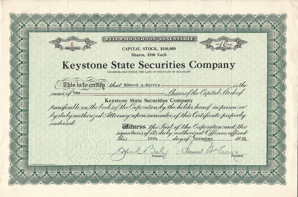 The certificate is dated November 18 , 1931. The company was incorporated in Delaware in 1931. Nice low numbered certificate, #6. Shipping is based on mailing within the United States. International shipping is additional. Please visit my store for additional stock certificates and bonds. I combine shipping. I leave favorable feedback for those who do the same.
