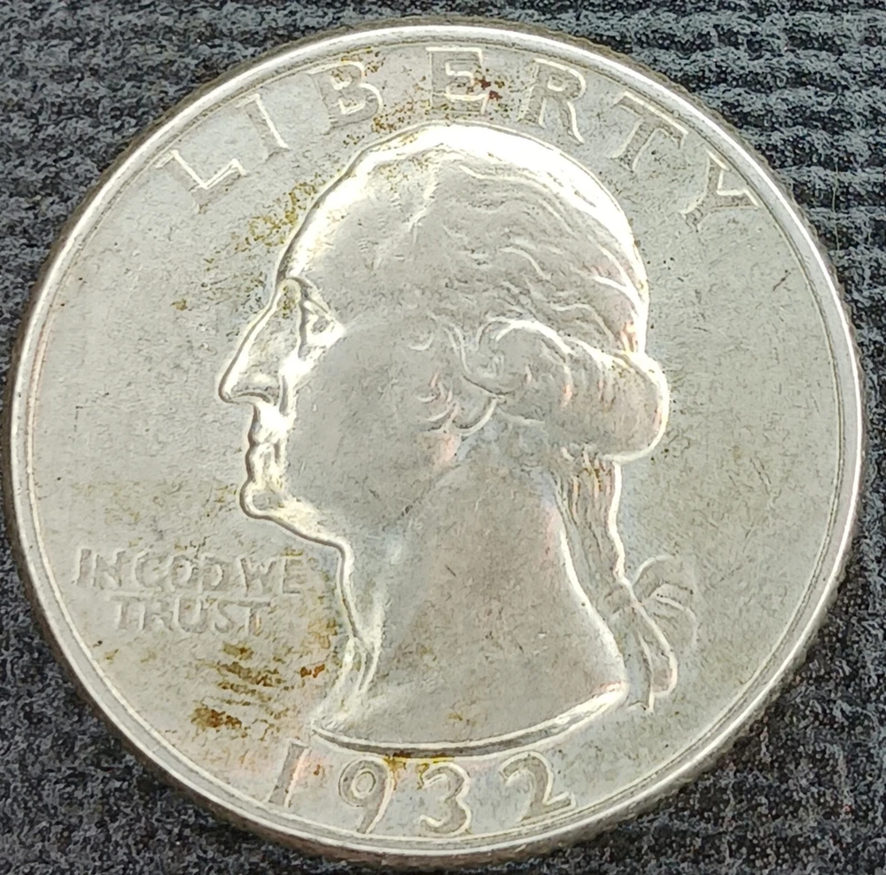 That is toning from being in a dansco for the past 5 years. Defenitely should try to get it in a dansco, if you want it to continue toning, I am going to store it in my personal dansco until it sells. This 1932 P Washington Quarter is a rare find for any coin collector. This quarter is uncirculated and made of 0.9 fineness silver. The coin features the first year of design and was struck in Philadelphia. The quarter is ungraded and uncertified, but its high grade speaks for itself. This coin is a great addition to any collection and is a must-have for fans of US coins. Don't miss out on the chance to own a piece of history with this 1932 P Washington Quarter.