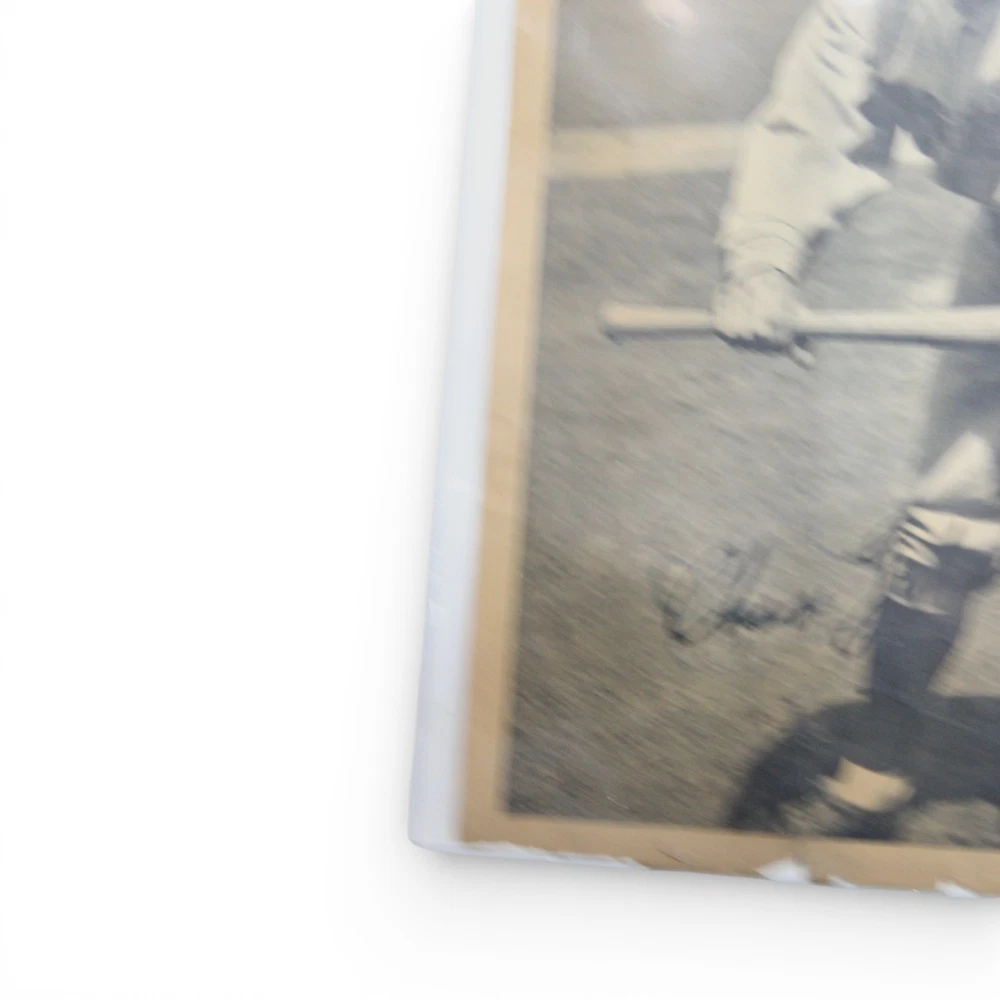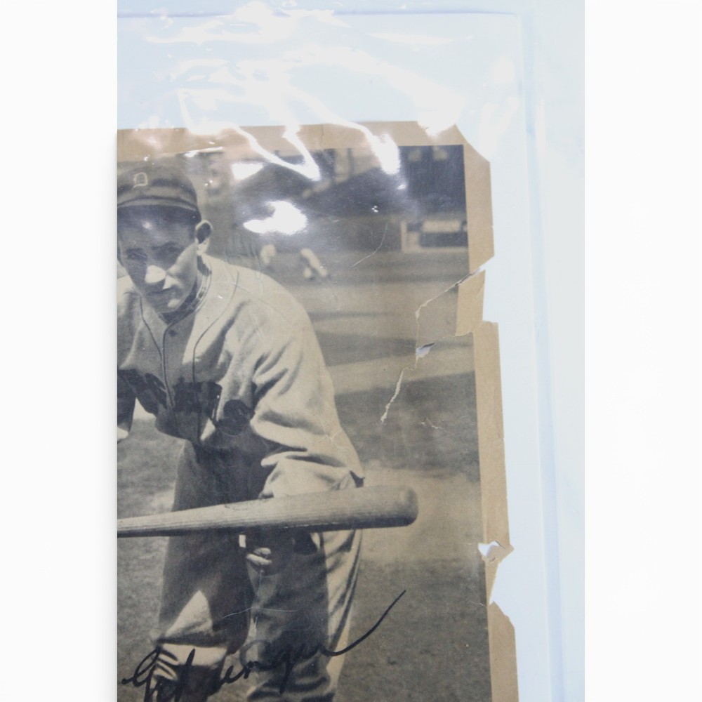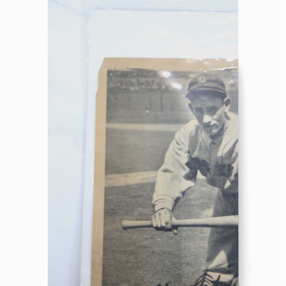 Original 1934 R310 Butterfinger premium featuring Hall of Famer Charlie Gehringer of the Detroit Tigers. This is the larger premium-style issue (not a standard trading card). The piece is closer to paper/photo size rather than traditional card dimensions. The image shows Gehringer in batting pose with the printed facsimile signature as part of the original design — this is NOT a hand-signed autograph. Details: • Year: 1934 • Issue: R310 Butterfinger Premium • Player: Charlie Gehringer • Team: Detroit Tigers • Type: Large format premium photo (not a standard card) • Printed facsimile signature Condition Notes: Shows significant age-related wear including creasing, edge tears, corner wear, surface wear, and areas of paper loss along the borders. Visible damage along the right edge and lower border. Please review all photos carefully for exact condition. Scarce pre-war Butterfinger premium featuring Hall of Fame second baseman Charlie Gehringer. Desirable piece for advanced vintage baseball and Detroit Tigers collectors.