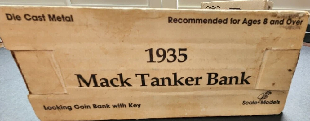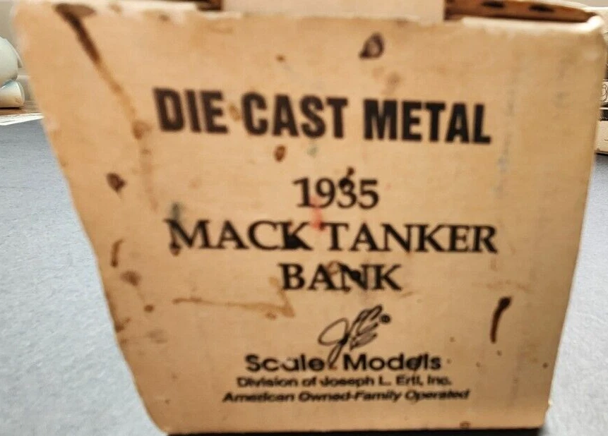 1935 Mack Tanker (Bulldog) Bank ~ Die Cast Metal Scale Model ~ Joseph L. Ertl Very cool black tanker! Never removed from box except for pictures. Never played with. In excellent unblemished condition. Super clean!