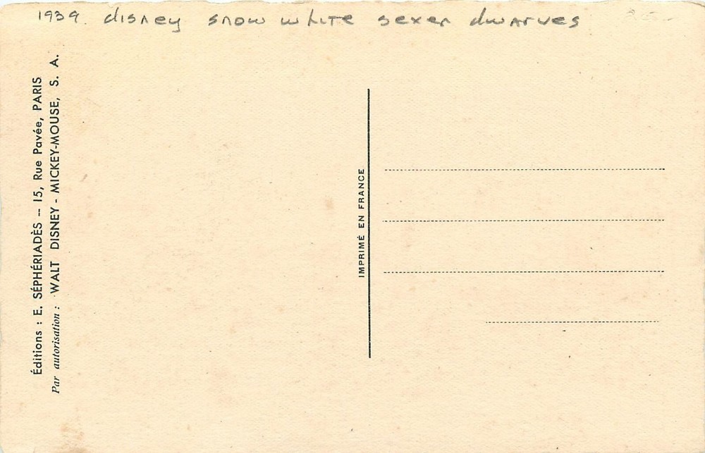 1939 Disney Snow White Seven Dwarfs Valentine's Postcard 24-12318