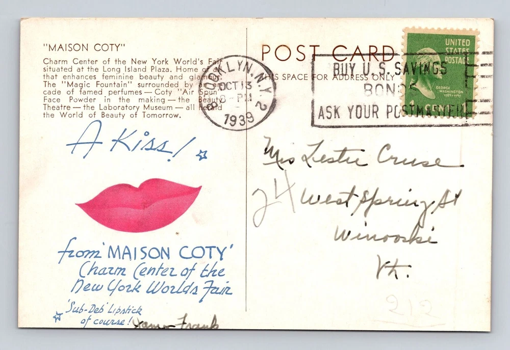 1939 New York World’s Fair Maison Coty Cosmetics Building Postcard