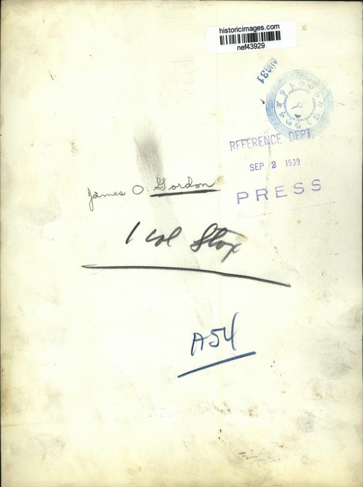 ebay template Note: Please study the images carefully to determine the condition of this vintage photograph, as it may not be in perfect condition. It may contain wrinkles, cracks, and possibly even tears due to its age and how it was handled before it got to us. A scanner may interpret colors and contrast differently than human eyes will, so it is possible that the actual photograph may be slightly darker or lighter in person. This vintage photograph is offered for sale as a collectible item and conveys no transfer of copyright. 1939 Press Photo James O. Gordon - nef43929 This is an original press photo. Photo measures 7 x 9.25inches. Photo is dated 09-02-1939. PHOTO FRONT PHOTO BACK Historic Images Part Number: nef43929 FAQs Q: Can I just download a digital version instead? A: No, we sell only vintage originals and do not make or distribute any copies, including digital ones. Q: Do you combine shipping and invoices? A: Multiple photos won on the same seller ID combine automatically through the eBay checkout process. If you encounter problems with this, send us a message via eBay messaging and we will send you an invoice. Due to eBay limitations, we cannot combine items won on our different seller IDs for a single shipping charge. Q: How quickly do you ship the items once paid? A: We ship within one business day after your payment clears. If you do not receive an "order shipped" email from us by the close of the second business day from submitting payment, please e-mail us via eBay messaging. Q: How do you make sure my photograph arrives safely? A: We package each order between two cross-corrugated pieces of cardboard to ensure that the package is as difficult to bend as possible. We then wrap each order in a plastic sheet to help protect against moisture. We want you to rest assured that we take every precaution to ensure that the photograph you receive will be in the same condition in your care as it was in ours. Q: Will the "Historic Images" watermark be on my photo when I receive it? A: No. This is a digital watermark we use to protect our images. It is not printed on the photo. Q: What are your office hours? A: eBay for us is a business, and a very fun one to be in! We are open M-F 9 to 5 (CST). Therefore, we do not return e-mails and phone calls over the weekend. We observe the following holidays: New Years Day, Memorial Day, Fourth of July, Labor Day, Thanksgiving and the day after Thanksgiving, Christmas Eve and Christmas Day. Q: Where did all these vintage photos come from? A: These original vintage photographs are from various news service and newspaper photo archives from locations around the country including: Boston, Detroit, Tampa, Chicago, Denver, Seattle, New Orleans, Milwaukee, Portland, Spokane, and more. We do not copy or reproduce any photographs -- every item is a unique vintage piece that was housed in a news archive. Q: Can I use this photograph in my book/blog/website? A: The short answer is no. There is no transfer of copyright for republication or reproduction with these photographs when you purchase them, and only photographs taken before 1923 are currently automatically in the public domain. Permission from the copyright holder, which usually can be identified from the back of each photo, must be sought to republish or reproduce the image for any purpose. Q: Do you relist items (in case I miss an auction ending)? A: Auction items that receive no bids are relisted in our store (historicimages-store on eBay) as a fixed-price item and at a higher price than the starting auction price. Q: Do you leave feedback? A: Yes, we always leave feedback for buyers. Our software monitors when our buyers leave us feedback, then notifies us that we can leave feedback for the buyer. Rest assured, if you leave feedback, we will do the same! Check out our family of eBay IDs: historicimages01 Sports Photos historicimages02 Entertainment Photos historicimages03 Americana Photos historicimages04 International & War Photos historicimages05 Transportation Photos historicimages06 Photos of All Subjects historicimages07 Entertainment Photos historicimages08 Newsworthy Photos historicimages09 Entertainment Photos historicimages10 Sports Photos historicimages-store Our largest fixed-price selection historicimages-gallery Hand-picked photos Saturday night auctions About Us Historic Images was formed in September 2009, with a handful of scanners working out of a basement to digitize newspaper photo archives. We have since moved out of the basement, and we can now archive thousands of photos per day. Our company has worked with magazines and newspapers from Detroit, Boston, Denver, Seattle, Tampa, Chicago, and New Orleans, just to name a few. We are constantly adding to our inventory, and have assembled an archive of millions of photos to date. As our company evolved, we began our eBay business, which brings thousands of fresh auctions per week to the world's largest online auction marketplace. Our custom software systems and team of great employees allow us to efficiently scan and sell large photo archives online. At the very core of our company's DNA is a strong commitment to customer satisfaction and strict integrity for our product. Our promise to you is that we will do everything in our power to provide you a great buying experience. Copyright 2009 - Present, Historic Images, Inc. Sell Smarter with Kyozou. Inventory and Ecommerce Management