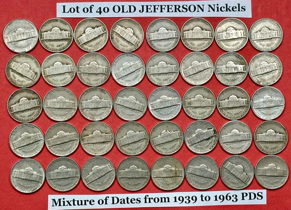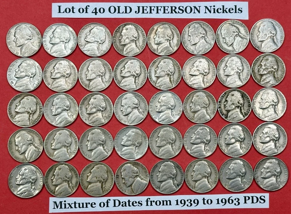 100% Customer Satisfaction Guaranteed! ✯ Buy with CONFIDENCE from a seller with 22+ years on eBay. ✯ ----------------------------------------------------------------------------------------------------------------------------------------------------------------------------------------------- Product Description: This listing is for 40 Old Jefferson Nickels with a random mix of dates from 1939-1964. GREAT BIRTHDAY OR CHRISTMAS IDEA! Please feel free to contact us for bulk purchase requests. We have several more that we haven't listed yet. We would be happy to customize a special listing for you. Please message us via eBay messages. About Us: Our small eBay business was built slowly over the past 22+ years. We have completed thousands of successful eBay transactions over the years and have many returning customers. Please visit our eBay store. We have several items for sale. Kindest regards, Stan & Penny