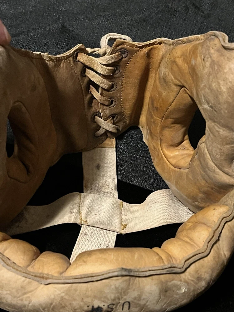 1940's Rawlings NHG United States Navy Leather Boxing Protective Gear Headgear. Complete. All buckles, elastic, and laces work. Head not included. Buyer pays zip code calculated shipping: USPS Ground Advantage 2 - 5 business days 2 to 5 business days Max. 70 pounds Tracking included: Yes Insurance included: Yes Buyer pays: $6.25 - $10.77 Buyer pays eBay discounted rate $6.25 - $10.77 $9.35 - $16.20 Was Retail rate $9.35 - $16.20 Save when you buy a label on eBay
