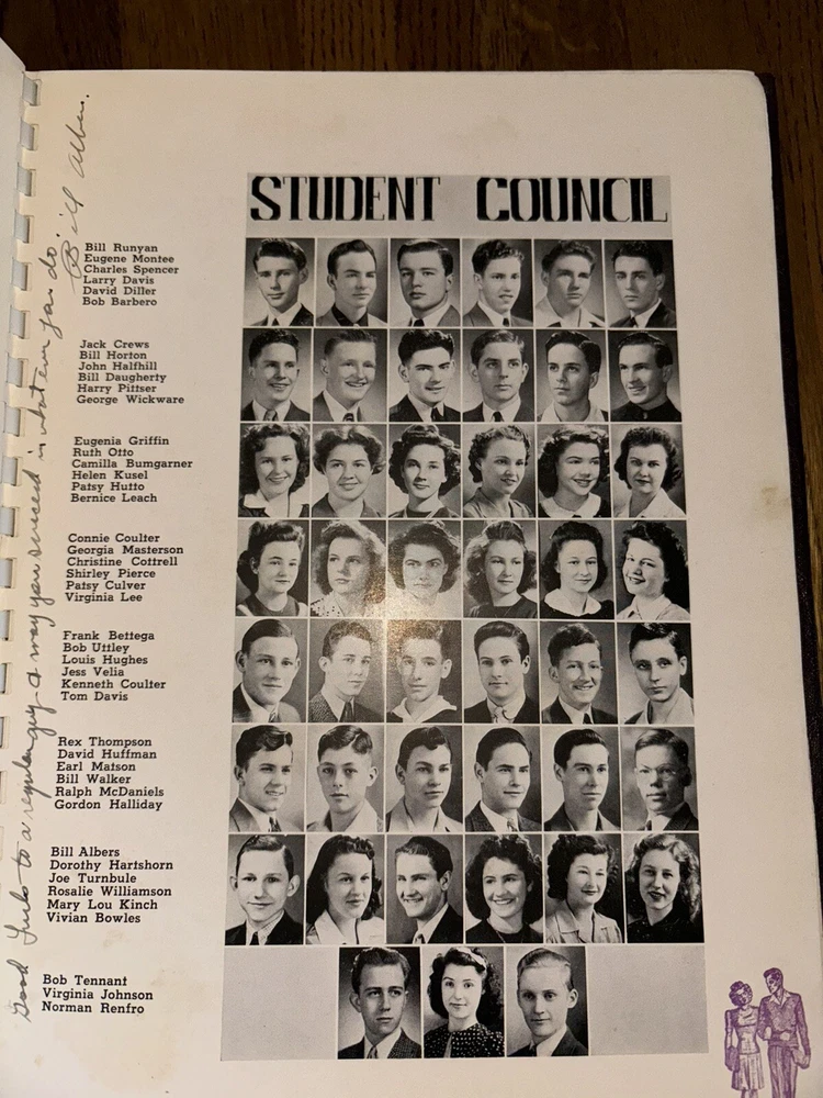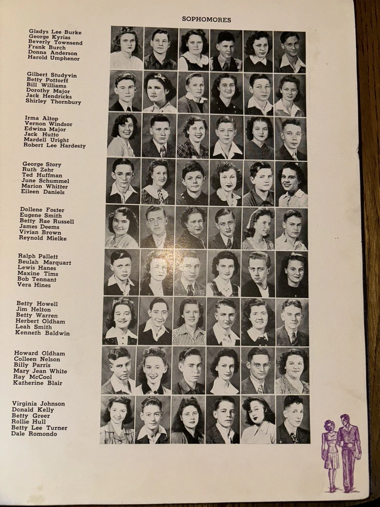 1942 Pittsburg High School HS Dragons Yearbook Kansas KS annual Purple White PO name engraved on cover…. Signatures/writing on several pages See pics for details
