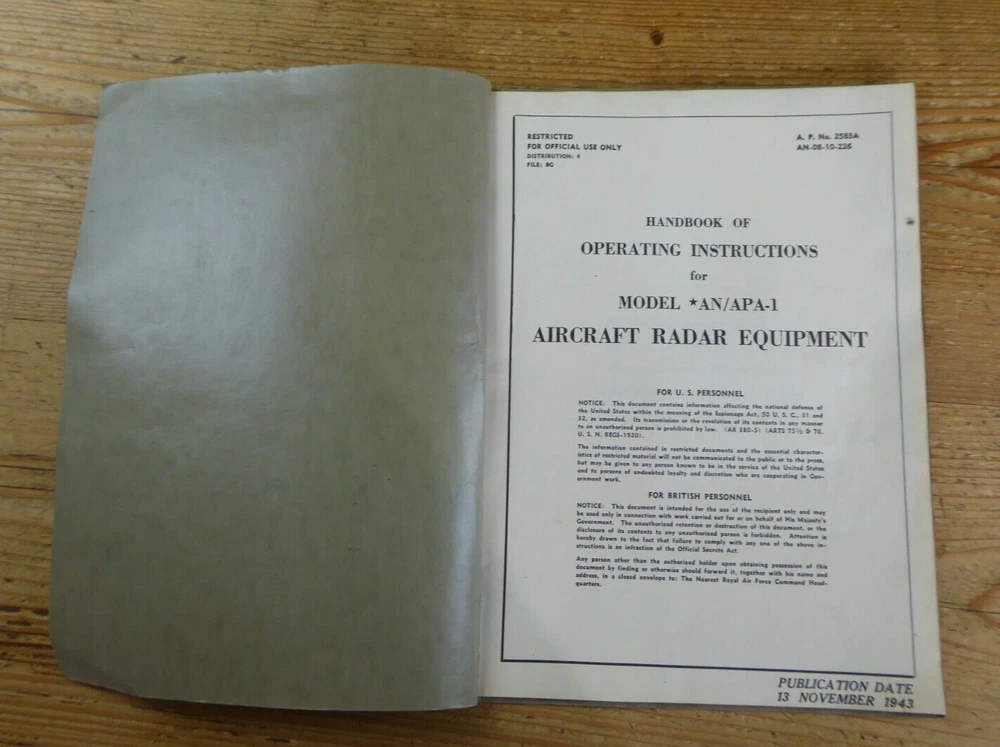 1943 Aircraft Radar Equipment Official Operating Handbook UK & USA