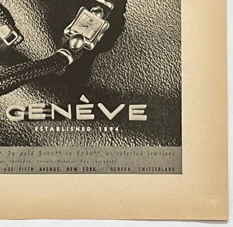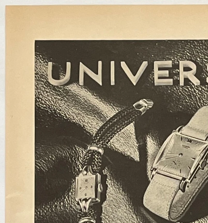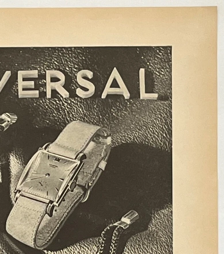 1944 Print Ad Universal Geneve Watch Co. Womens and Men's Watches. Ad measures approximately 12 X 8 3/4" and in good overall condition. Will frame & display nicely . Ad being viewed is ad shipped. Ad comes from the 1944-45 Ballet Theatre Tour Program Don’t hesitate to ask any questions you may have.