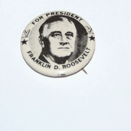 An Original 1944 Franklin Delano Roosevelt Presidential Campaign Button Pinback button promoting Franklin Roosevelt for president, 1944. Near mint. To either side of FDR's portrait is the letter "V" and its Morse code analogue, signifying victory over both the Axis and Republican challenger Thomas Dewey. 1944 campaign items are relatively scarce due to limits placed on wartime manufacturing. If you own one button from FDR's fourth and final campaign, this should be it. Item Details: This button is in NEAR MINT condition and will be a fantastic addition to upgrade any collection large or small. This button measures 1.25 inches in diameter. All of our pinbacks and buttons are authentic and are backed 100% by the PoliticalPins4YOU Guarantee. Buy with Confidence -- see our feedback!! Please feel free to browse our store for more great deals on your favorite presidential campaign pinbacks ranging from Theodore Roosevelt to today. Visit Our eBay Store: Political Pins 4 You Thank you so much for looking. God Bless America!! Sign up for our email newsletters by adding our eBay Store to your Favorites. Be sure to add us to your favorites list !
