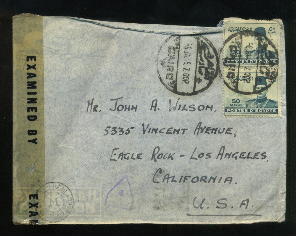 1945 WORLD WAR II COVER CAIRO EGYPT TO LOS ANGELES CALIFORNIA CENSORED SOLDIER VERY RARE Bid with confidence; more than 23,500 positive feedback. As always, with all my auctions, 100% satisfaction guaranteed or your money refunded! Check out my other items for tokens, checks, baseball cards, coins, stamps, first day covers, autographs, and other interesting items. We are located in Southern California. California buyers must pay 9.50% sales tax.