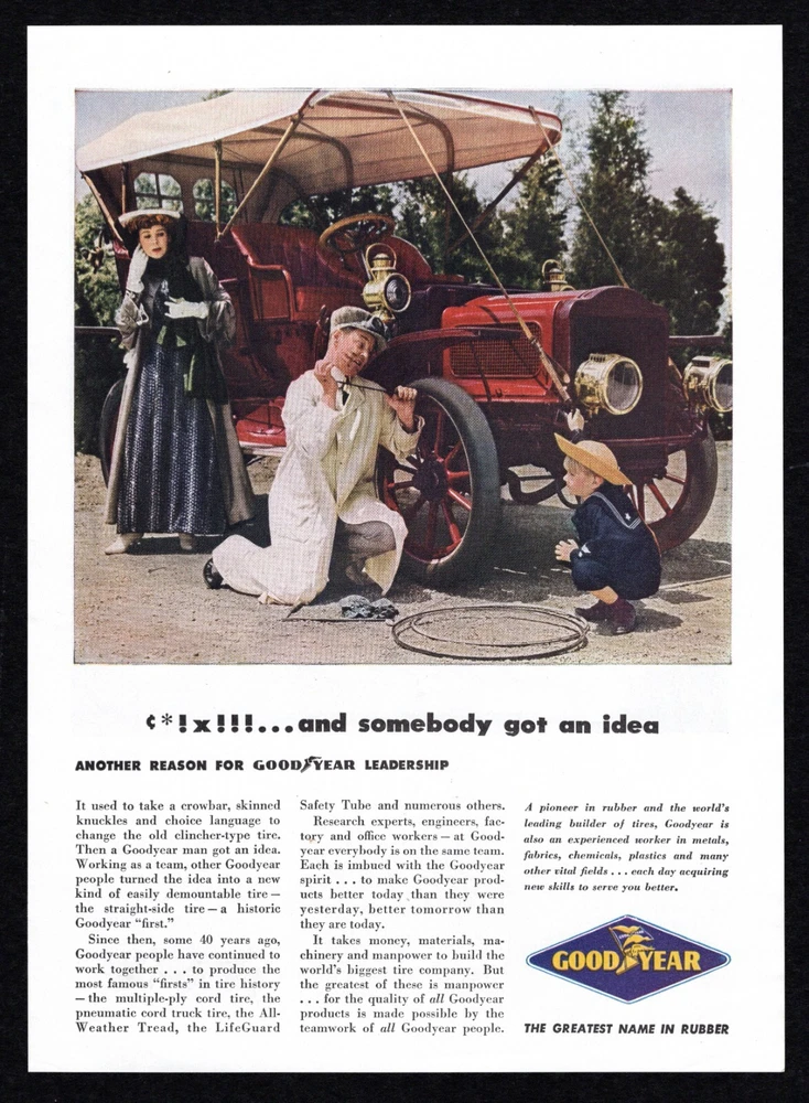 1946 Good Year Greatest Name Rubber Tire / Four Roses Blended Whiskey Print Ad Original Advertisement Page Placement: Interior A single page, with both sides scanned and described. Suitable for Framing Ad Description/Company Name : Side 1 : Full Page, Color Good Year – The Greatest Name in Rubber Another reason for Good Year Leadership It used to take a crowbar, skinned knuckels and choice language to change the old clincher-type tire. Then a Goodyear man got an idea. Side 2 : Full Page, Color Frankfort Distillers Corporation Four Roses A Truly Great Blended Whiskey Publication Date: 1946 (I received several folders, each containing roughly a year’s worth of loose pages of vintage Time Magazine s . Some of the pages may have the magazine month and date printed on the bottom, most don’t . Without more detail, all I know is which year each folder contains... ) Publication Name: Time Magazine Magazine Size: Approx 11 x 8” (May be smaller after trimming.) Condition: Used. These are original pages from the original magazines. They are very old; f oxing, fading, discoloration may be present. Also corner folds, edge damage, creases, ripples, scuffs and/or other small imperfections. I will leave staple holes if they are minimal or if trimming would impact the image. I will leave 2-page ads together if possible, or separate the pages if necessary. Images are scanned on black background, NOT matted or framed. The images you see are the Exact same page being sold . P lease examine and make your own judgment. Some magazines print misaligned. Depending on page condition/image edges, I may square them or may leave as is. When you mat the page, you can align as desired. NOTES: (Anything not easily visible in the images) Your satisfaction guaranteed! Ideal for: Collectors Historians Gifts Themed decoration for home or business Museums Magazine ads are shipped in: 2-mil Clear Polypropylene Magazine Bags with a white backer board, in a Rigid Mailer, in a sealed Poly Mailer, marked "Handle With Care, Do not Bend" and shipped USPS. We DO combine shipping for multiple purchases!