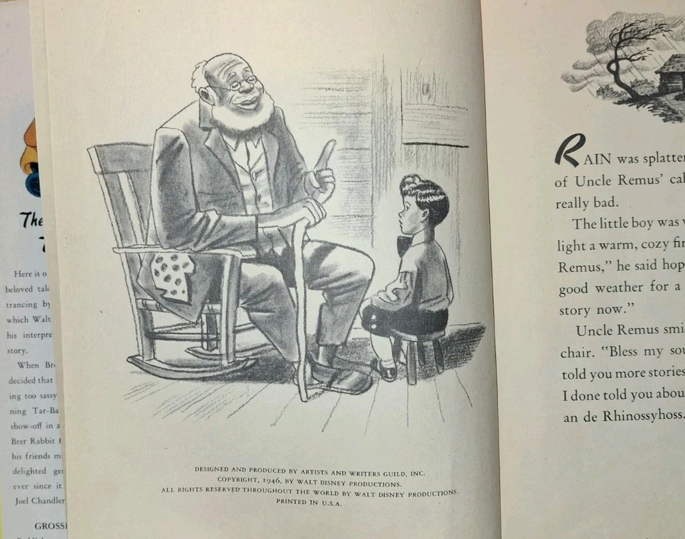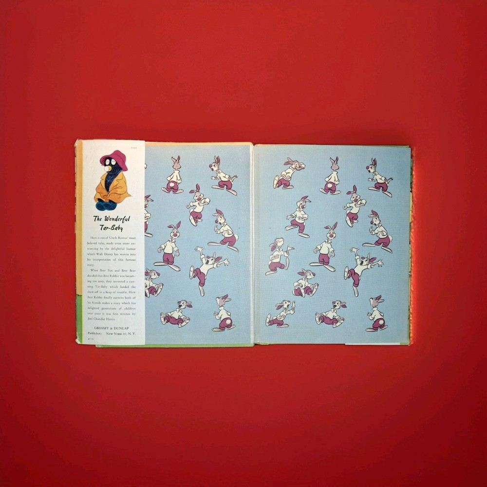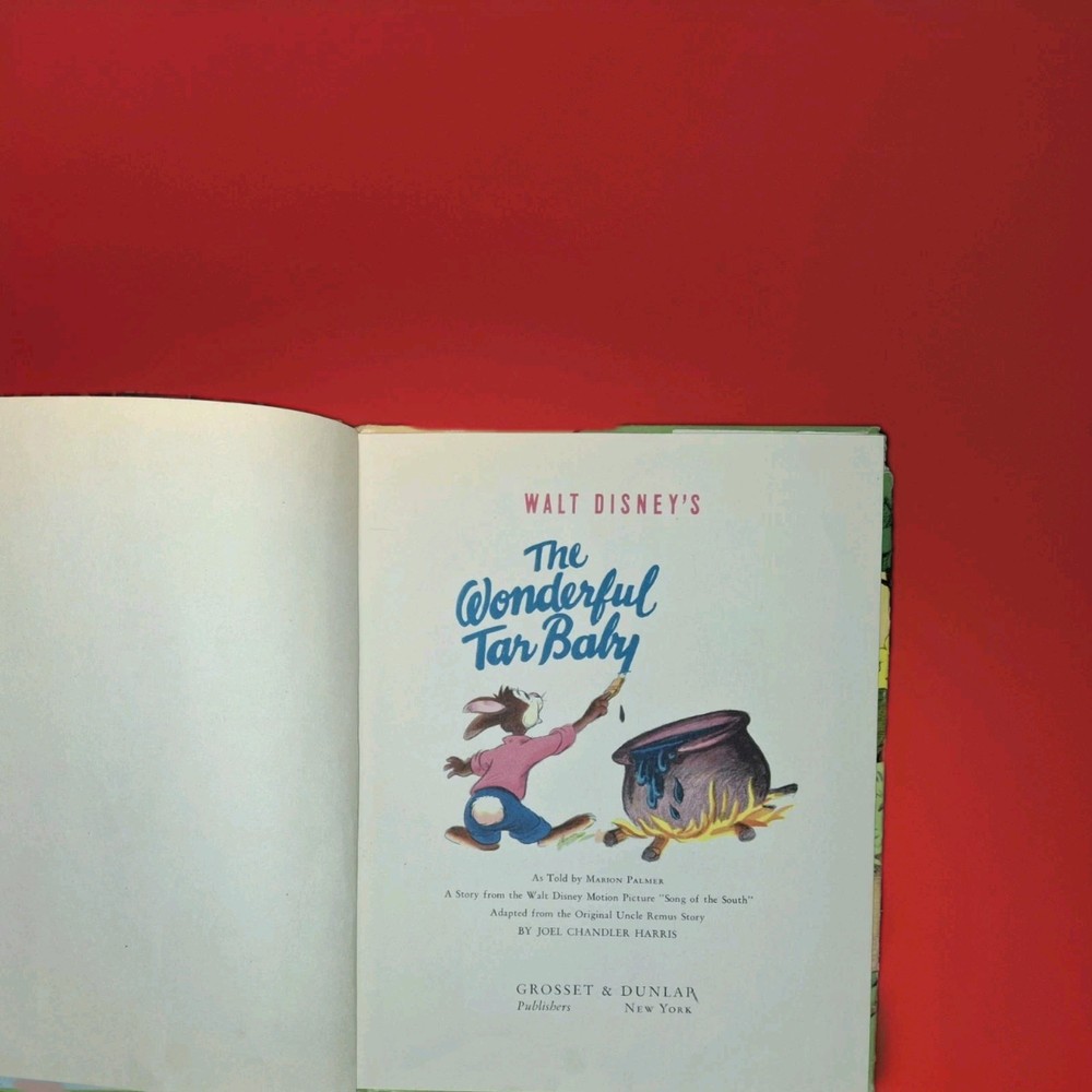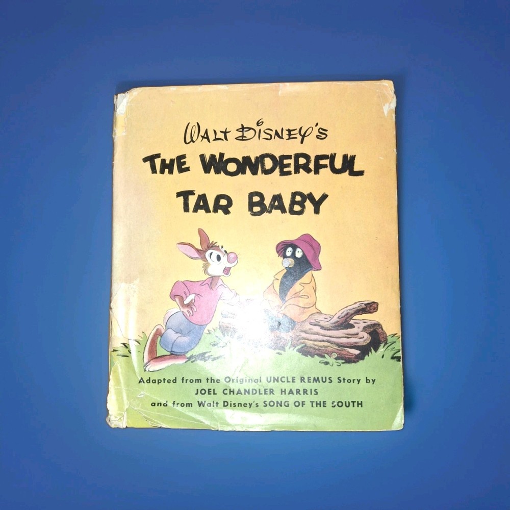 The product is a rare and banned 1946 hardcover book titled "The Wonderful Tar Baby" based on the original Uncle Remus story by Walt Disney. The book features illustrations by Disney Animation and is part of the Brer Rabbit character family. Published by Grosset & Dunlap in the United States, this collectible item is a piece of literature and fiction that holds nostalgic value for fans of classic Disney stories.