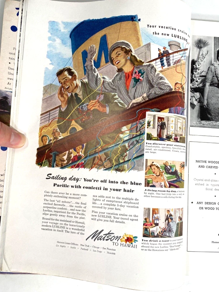 Magazine of Hawaiiana: Paradise of the Pacific Holiday Edition Issue 1948 Stories about Hawaii and great Hawaiian Ads! Size is 8.75" x 11.75" inches – 142 pages Visit our store for 2,000+ items – Thank You!