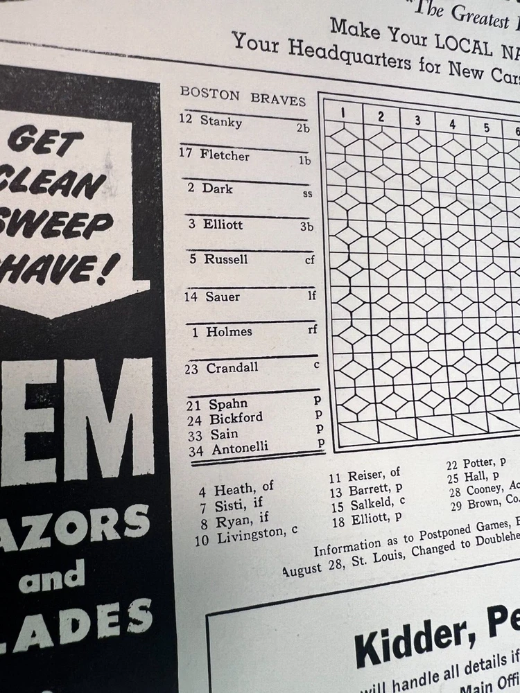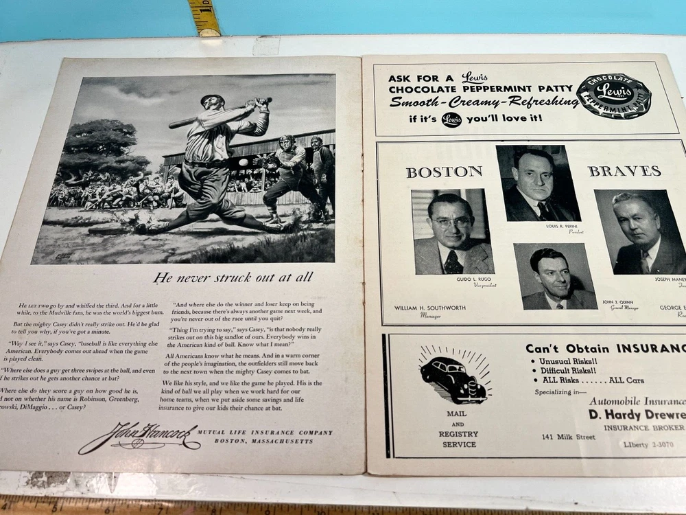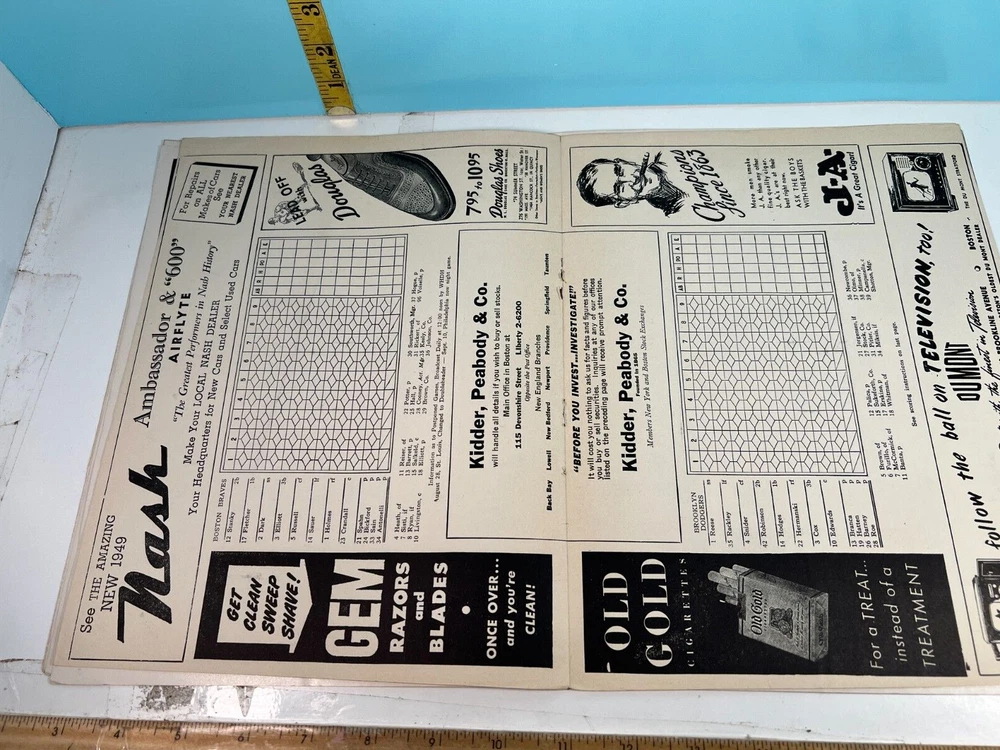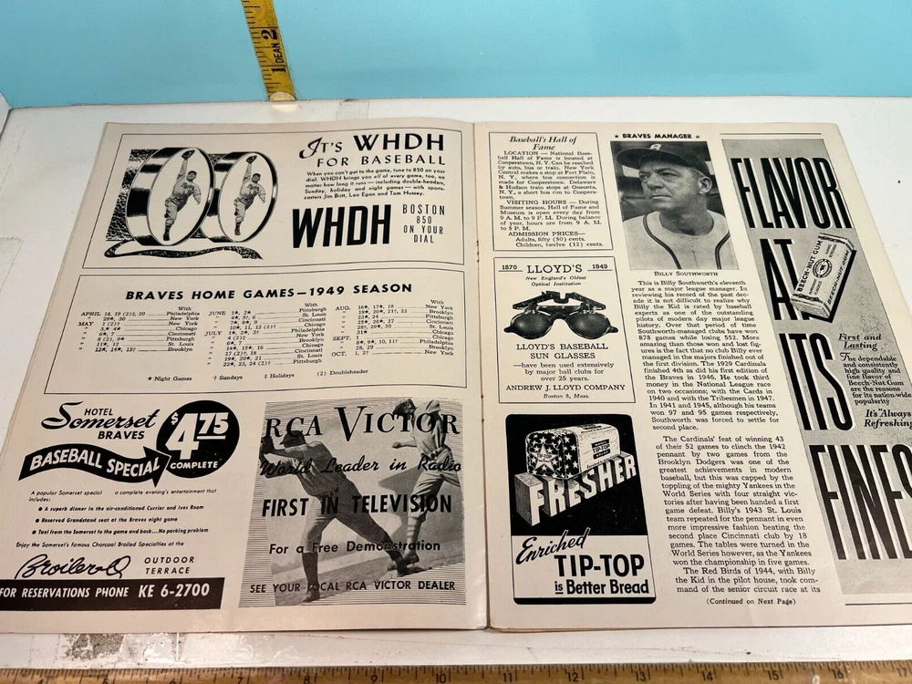 1949 Boston Braves Baseball Scorecard v Dodgers Scored HIGH GRADE!!π₯ Robinson Beautiful Book in Fantastic Condition. HIGH GRADE! Please Check Out All My Other Auctions For Sale Right Now! !!!Shipping Delays!!! Due to changes at USPS, packages may take one to two weeks longer than normal to be delivered. Here is information from eBay about the delays: https://community.ebay.com/t5/Announcements/How-we-re-responding-to-USPS-delays/ba-p/31134359. PLEASE CHECK OUT CARD COMPLETELY BEFORE PURCHASE. IF YOU MUST RETURN PLEASE CONTACT ME PRIOR TO FILING A CLAIM. WE CAN WORK IT OUT. Condition. Collecting Cards for over 50 Years our inventory is quite extensive. Graded and Ungraded. Lots of Stunning Cards for Sale. Card Grading Note: Typical Note on Card Grading. I am not an expert and I will not try to give grade. All grades are my best guess at what this card may grade out if sent into PSA, CGS, Beckett.....My Estimates are as follows below. Baseball Card Grading High Grade = Mint, Near Mint, EXMT-NM PSA 7-10 Mid Grade = EXMT, EX, VGEX PSA 4-6 Low Grade = VG, Fair, Poor PSA 1-3 WE COMBINE SHIPPING ON EVERYTHING!!!! HEY THERE! We are always looking to Buy Collections of Vintage Sports Cards, Schedules, Programs, Yearbooks, Pennants and More. We also Buy War & Strategy Games. SEND ME A LINE AND WE CAN DISCUSS YOUR COLLECTIONS. THE BEST IS RIGHT HERE PAYMENTS: We ask that payment be made within 5 days of purchase. If you require more time for payment, please contact us and we will work with you on the details to make life easier for you. COMBINED SHIPPING: We combine shipping on everything we sell, large, medium and small. If you plan on buying more that one item, please let us know and we will hold your item/s until your bidding action is complete and for a limited time of up to 7 days. When completed we will invoice you for all your purchases. PACKAGING: We pride ourselves on packing our products safely and securely and getting it to you as fast as possible with next day shipping. Tracking information is provided on ALL items as required by Ebay. DOMESTIC SHIPPING: Domestic shipments are made primarily with USPS First Class or Priority Mail or Federal Express immediately the next day upon payment. INTERNATIONAL SHIPPING: We ship to select Countries: Canada, Most European Countries. We use Ebay Standard International Shipping unless buyer request Ebay Global Shipping Program. This ensures complete delivery to your doorstep with tracking provided. If you need to return any item, please contact us first to see if we can settle the issue. If you decide to return, please send it back to us in the same condition as it was sent 1. We do our best to describe all items and provide as much knowledge about the item as we can, but we are not experts in all fields. Please understand that if an item is not described with expert accountability, it is not done with malice or with intent on misleading the buyer. If you are not happy with your item due to description discrepancies, please ask questions first before filing a Return Claim. Let us see if an arrangement can be worked out to both our satisfactions. About Us We here at Chubby Cat Collectibles and Vintage Sports Memorabilia are a very small outfit and value your business. Our Feedback speaks for itself as to our commitment to you, the buyer. We offer a eclectic mix of items but specialize in Vintage Sports Memorabilia and War & Strategy Games. In order to keep our stock fresh, we scour the Wild West in search of super neat, unique and curiosities. Our goal is to make you happy by providing the opportunity to obtain True Treasures and Collectibles. If you like Vintage Sports Memorabilia, We got 'em If you like War Games, we got 'em If you like Old Toys, we got 'em And the Big Question we get many times is if we really have a Chubby Cat? Yes we got one. His name is Sam I Am and at one time he was very Chubby, but has since slimmed down. CHUBBY CAT SPORTS MEMORABILIA & COLLECTIBLES Contact Us If you have any questions, please do not hesitate to contact us through our seller EBAY identification number. We always welcome comments and questions. CHUBBY CAT COLLECTIBLES