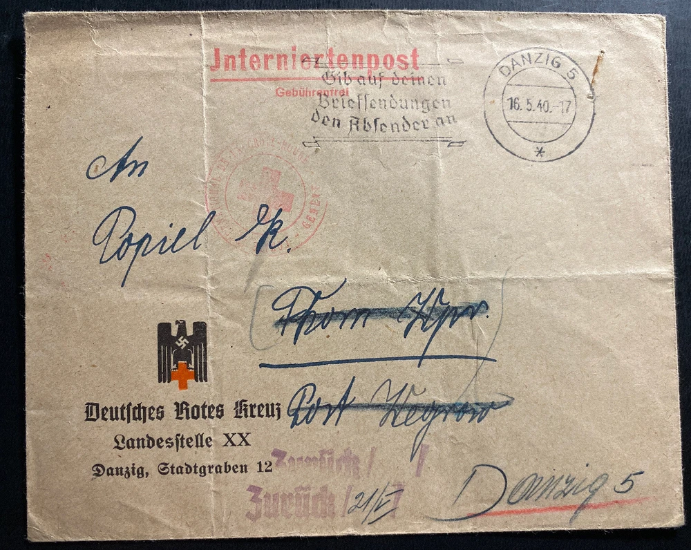Up for auction is a beautiful official Free Postage Cover From The German Red Cross Danzig Internee mail locally used . postmarked in May 16, 1940 . Cover is in good condition . Great deal at a great price. Nice stamps marks & cancels. *** For storage & shipping purposes the description page has been removed you only will get the cover ***