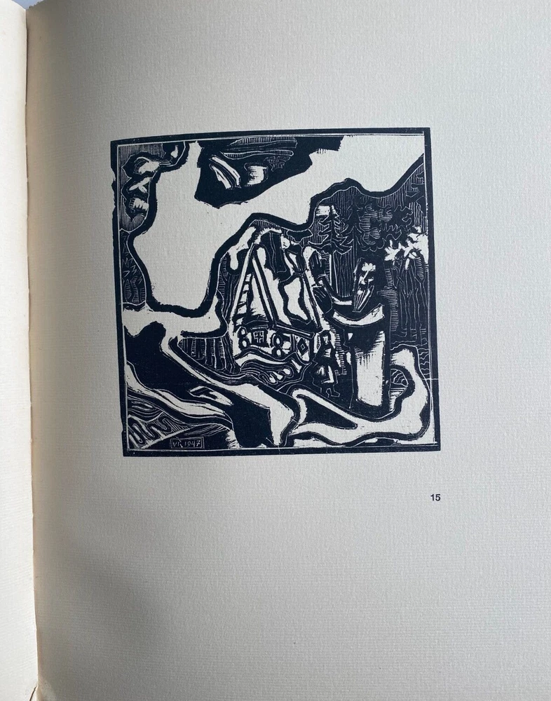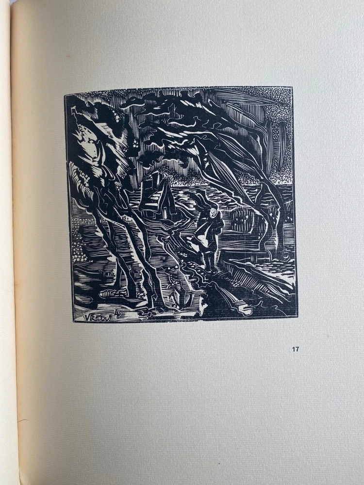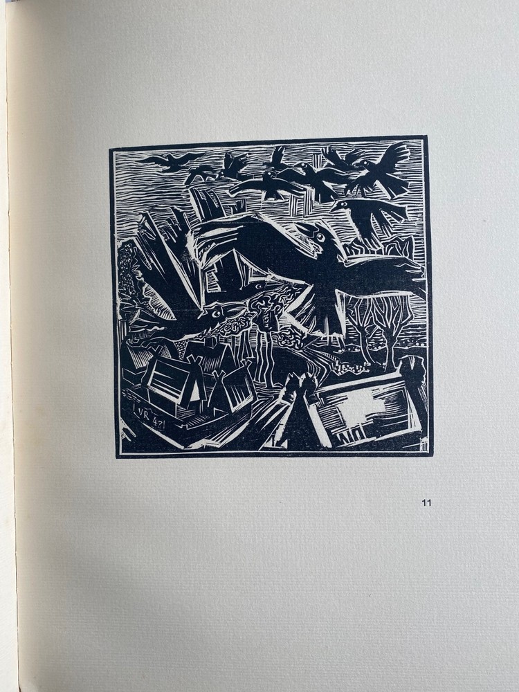 Express Shipping Worldwide is Free The Twelve Ravens: A Lithuanian Fairy Tale By Vaclovas Ratas Translation revised by Mark J. Kinney Text edited by Paulius Jurkus Illustrated by Vaclovas Ratas Published by T. J. Vizgirda, Munich, 1949 Limited Edition of 560 copies, this being numbered 44 Signed by Vaclovas Ratas Also, there is an inscription by the author to the front blank endpaper to Norman Lindsay, signed and dated by the author Illustrated with nine original woodcuts by Vaclovas Ratas, with initials in plates, and hand-set letterpress text. Volume XXVII of "Lithuania - Country and Nation.". The woodcuts are similar to the German Expressionist style using stiff angular images and aggressive sharp broken lines. The work of Vaclovas Ratas (1910 to 1973) is known for his basic approach of simplicity, sincerity and his love for decorative values. His work is not true to one particular style but executed in varying styles and techniques. He was a founding member of FORMA in 1931, a group of seven Lithuanian artists and his work was exhibited internationally. In 1937 he was awarded the Prix d'Honeur for his woodcut illustrations in "Jurate and Kastytis," a ballad of the Lithuanian Poet Maironis. During his exile in Germany from 1945 to 1949, Ratas started his own art school and in 1949 created the nine woodcuts for "The Twelve Ravens". In the same year Ratas emigrated to Perth, Australia. " The speed with which the artist embraced Aboriginal art is astounding. Vaclovas Ratas who landed in Perth in 1949 produced woodcuts that incorporated Aboriginal motifs by the end of that year. " (Roger Butler). Ratas eventually settled in Sydney which was dominated by abstract art. He joined the Lithuanian artist group Aitvaras (The Goblin). In cream-colored textured paper over boards blocked with the title to the front board, in 28 pages. There is very light shelfwear. The top of the outer spine has peeled. There is a just a few spots of foxing to the first two leaves. There is no sunning. the pages have not been browned or tanned. All woodcuts are in pristine condition. There are no missing, creased, loose, damaged, or stained pages. The spine and binding are solid. It is complete and original. Measures 24.5cm x 30.5cm. EXPRESS SHIPPING AND HANDLING is Free Worldwide All items are securely and well packed. Thank you for viewing my item.