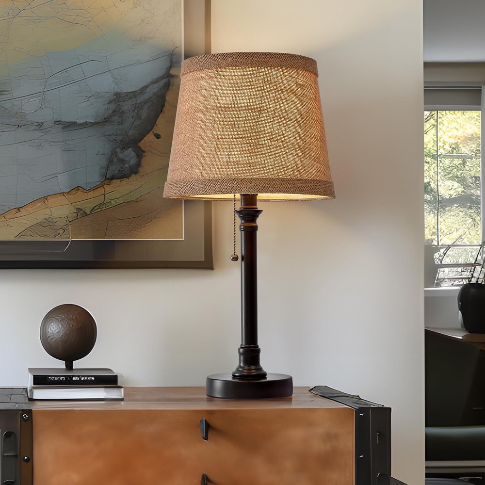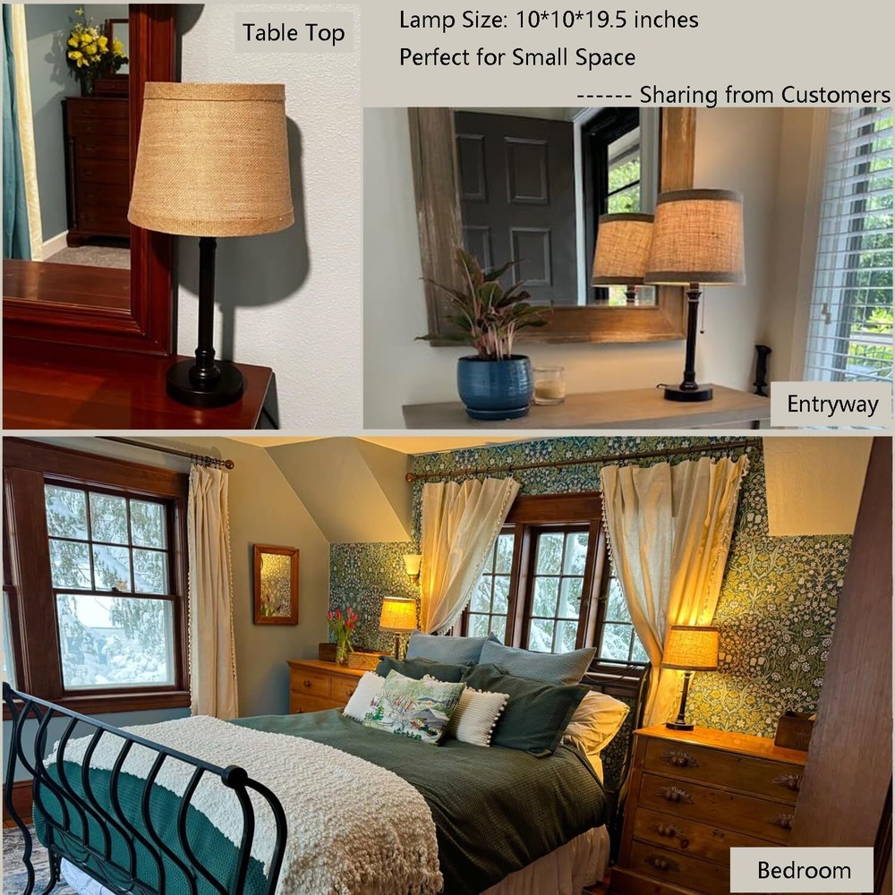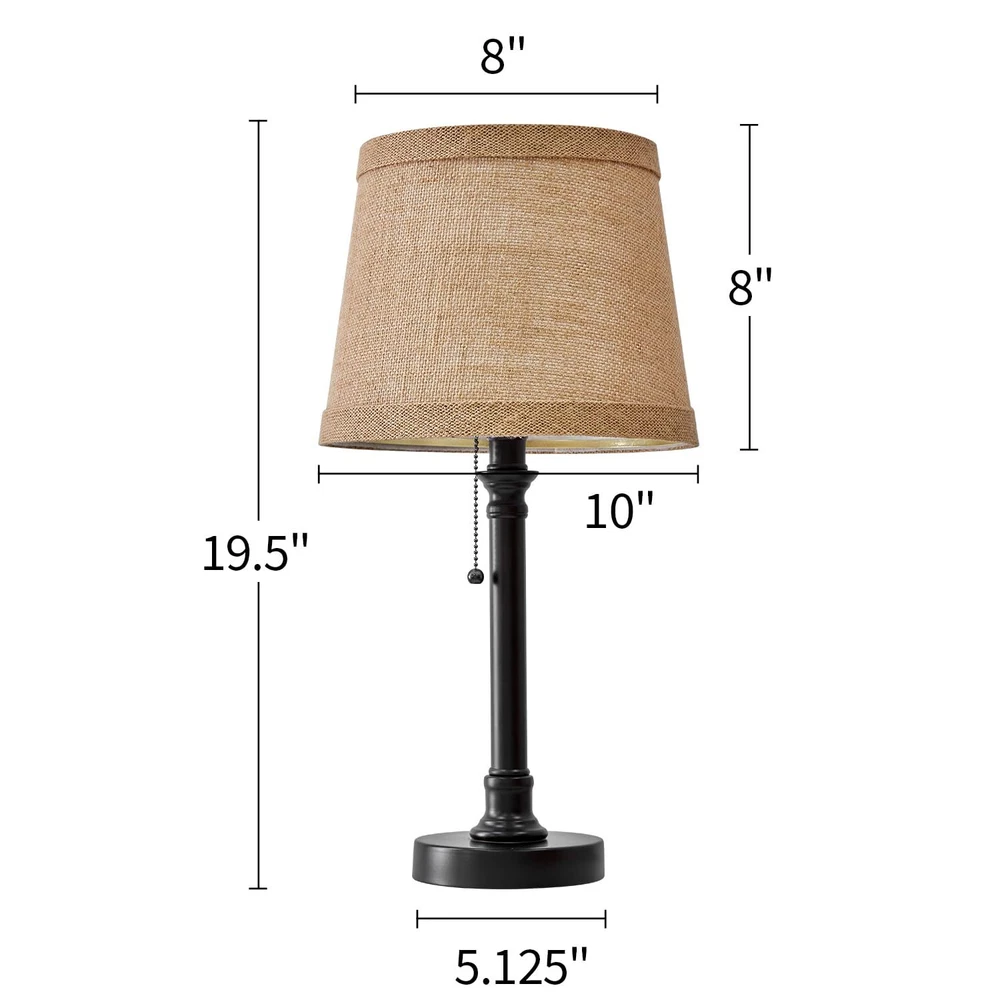 Black Table Lamp: Constructed of high-quality pull chain table lamp base and fabric shade,the small table lamp add a touch of elegance and stylish to your house,great to be used as black lamps,reading light,living room lamp,bedroom lamp and buffet candlestick Convenient & Space-Saving: The pull chain switch on this bedside table lamp can turn the light on or off without having to get up and flip the switch.19.5" High overall,this small table lamp take less space,perfect fits the desk or nightstand ,lamp living room,bedroom lamp,kid's room,girl's room,office,and so on Functional Lamp Shade: Made of elegant fabric shade,this rustic table lamp could filter the light into a diffused glow to generate a nice lighting,cultivate a warm,relaxing,and cozy ambiance to your room while reducing the damage to your eyes.(The lampshade needs to be assembled) Perfect Decor & Gift: The Modern design bedside lamp will be a good domestic adornment. Perfect present for your family or friends on Birthday, Christmas, New Years, and other celebration days. always focuses on the needs of our customers, that's why we're constantly upgrading our products. We want to ensure that every one of our customers has a pleasant shopping experience.