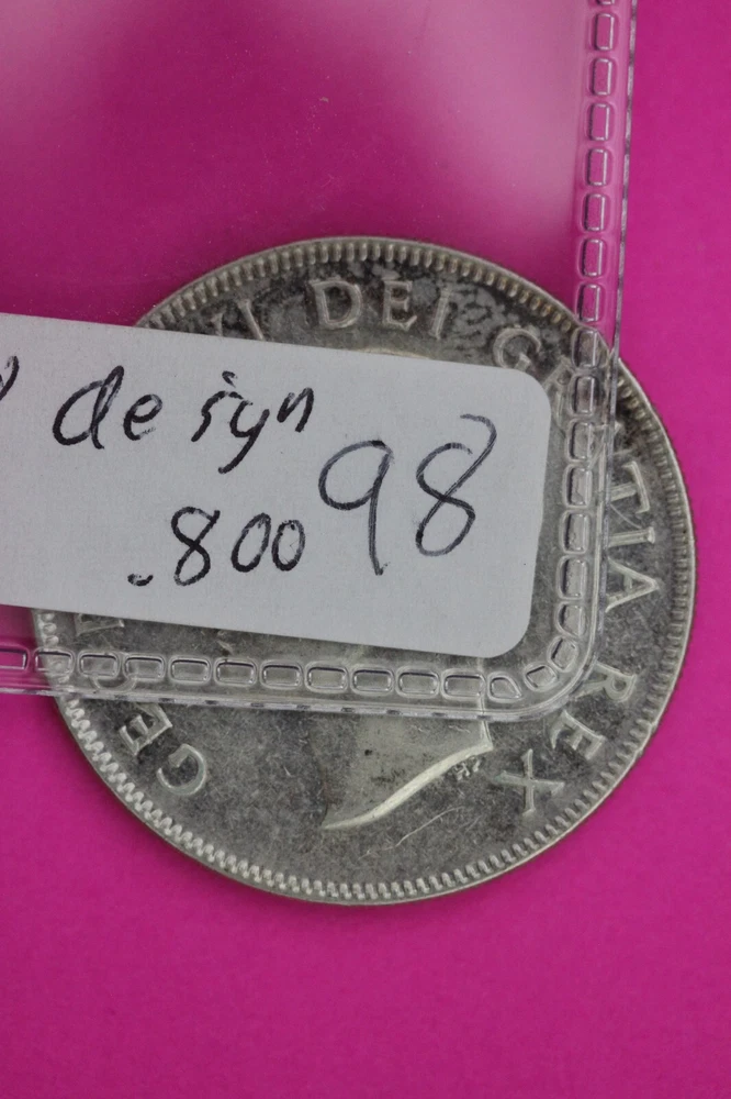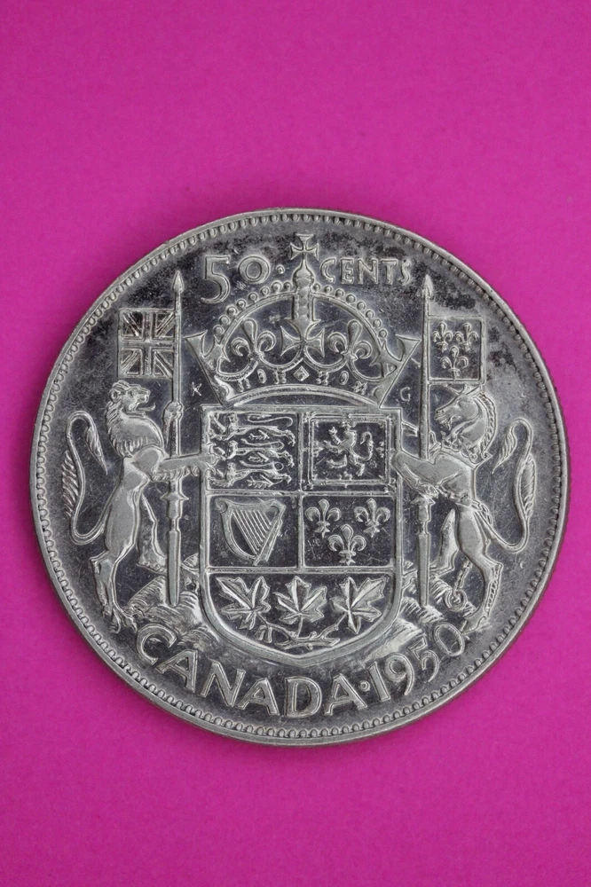 Total Precious Metal Content: 0.3oz Fineness: 0.800 Composition: Silver Coin: Silver Half Dollar Certification: Uncertified Strike Type: Business Certification Number: na Grade: Ungraded Precious Metal Content per Unit: 0.3oz Country/Region of Manufacture: Canada Year: 1950 Brand/Mint: Royal Canadian Mint