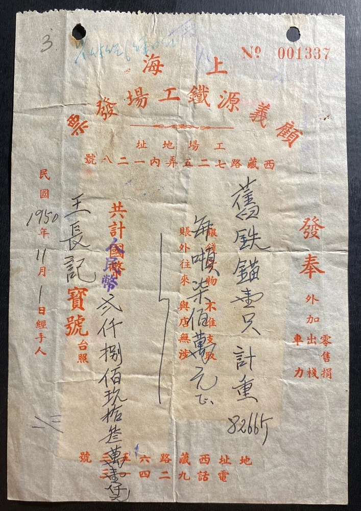 Up for auction is a beautiful revenue stamp receipt invoice cover from China . Great markings and cancels. In Good condition. Priced to sell. Postmarked in Chinese but dated in 1950. Nice postal History.
