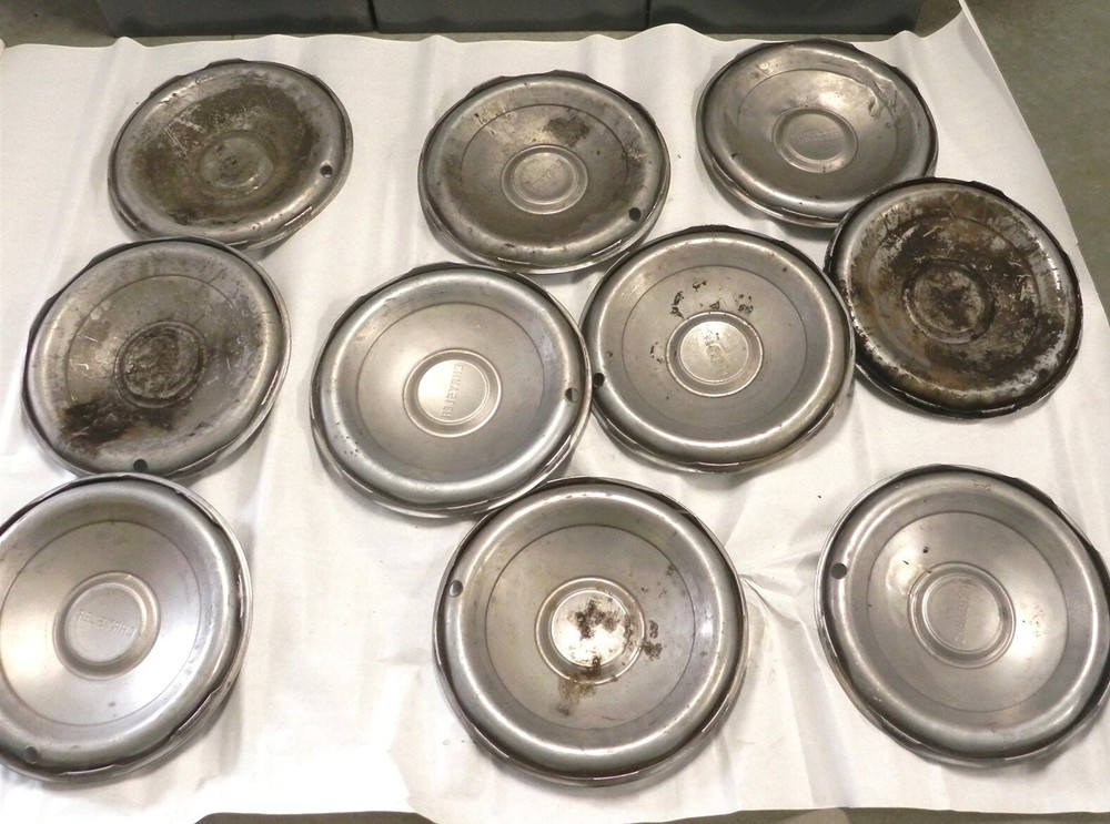 1950 CHRYSLER VINTAGE FACTORY ORIGINAL OEM HUBCAP WHEEL COVERS LOT OF 10 USED 1950 CHRYSLER VINTAGE FACTORY ORIGINAL OEM HUBCAP WHEEL COVERS LOT OF 10 USED WITH MINOR ROAD WEAR EXCEPT ONE HUBCAP THAT SHOWS EXTENSIVE DENTS-SHOWN IN PHOTO. See photos below for details. ABOUT US Jones Vintage Parts has been a family-owned business for over 40 years. We specialize in rare and vintage NOS and used parts for all makes and models from the teens to the 70s. We're passionate about uncovering and restoring the stories of the treasures from your grandparents and great grandparents history. We believe in breathing new life into the world's first modes of transportation. New vintage all the time! SHIPPING INFORMATION Purchased items will generally ship Monday through Friday, within 3 days via USPS Flat Rate or First Class upon payment receipt. Larger items will be shipped via FedEx Ground or UPS. Multiple same-day purchases will be combined for discounted shipping (request a revised invoice to receive bulk shipping discount or notify us of future purchases). International shipping also available. RETURN POLICY Our goal is your satisfaction. If you are unhappy with your order for any reason items may be returned for parts credit within three (3) days of receipt, and you will be charged a 10% restocking fee. There are no shipping refunds. Exchanges will be billed appropriate freight. All return items must be complete, undamaged, unaltered and in resale condition. You may be interested in our other eBay listings . Powered by SixBit's eCommerce Solution