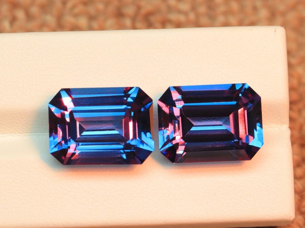 These gemstones are an alluring purple. The quality and cut are as incredible as described and as shown in the pictures. Their condition is very good and they are a very good value. The shipping was slow but I believe it was because it comes from a different country. Overall. I highly recommend this seller.