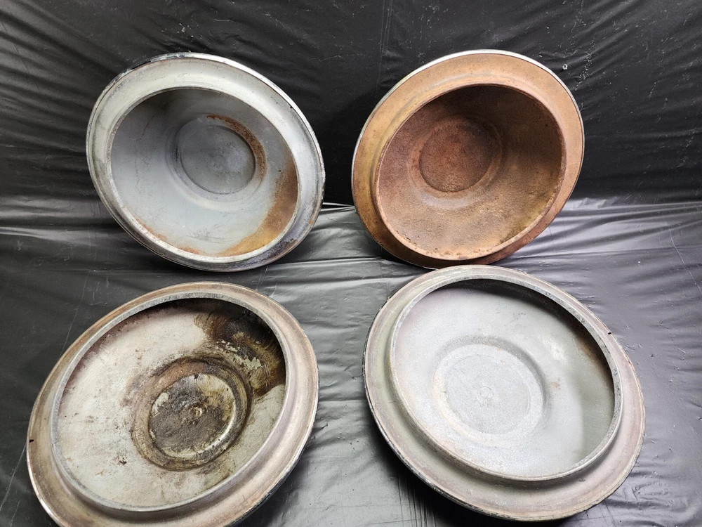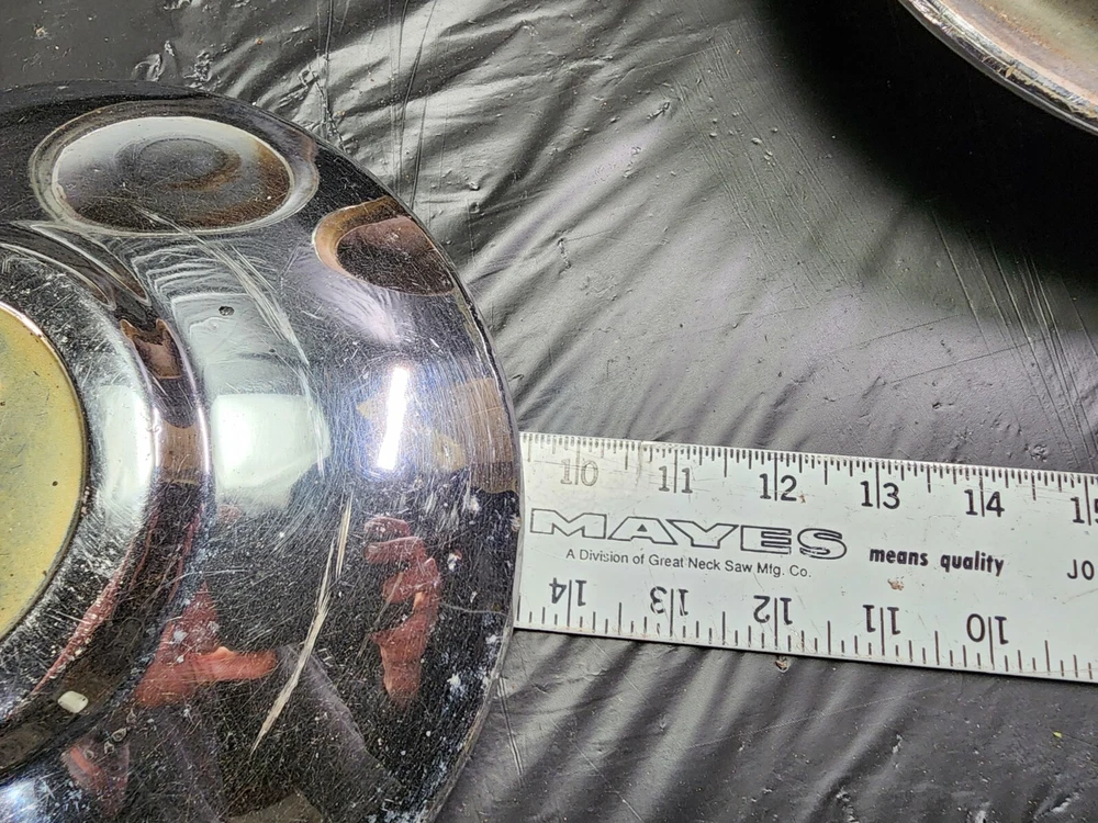 Vintage 40s 50s 60s 70s hub caps. 1950s chevy set of 4 Original OEM Factory OE hubcaps wheel covers center caps. in good condition considering their age and being used. These are Used hubcaps off of old classic cars that were driven on the road and used, so please see photos for complete condition as they are not all perfect. Most have some fading, dings, scuffing, mineral staining, etc could use a good polishing to bring em back to full shine, but otherwise in beautiful condition. Check out more of my ebay page as we are going through and listing a ton of classic / vintage hubcaps from the the 20's 30's 40's 50's 60's 70's 80's 90's 00's and up. all different makes and models such as Ford Chevy Chevrolet GM Cadillac GMC camero nova Chevelle Nomad Bel Air Mercury Corvette Mustang Oldsmobile Pontiac Lincoln Dodge Plymouth Buick Chrysler Mopar Fairlane Volkswagen Cheiftain Challanger Charger 1500 4x4 muscle car hot rod rat rod Cars and Trucks 15in 14in 16in and so much more from full sets to sets of 2 and singles, you name it check us out!