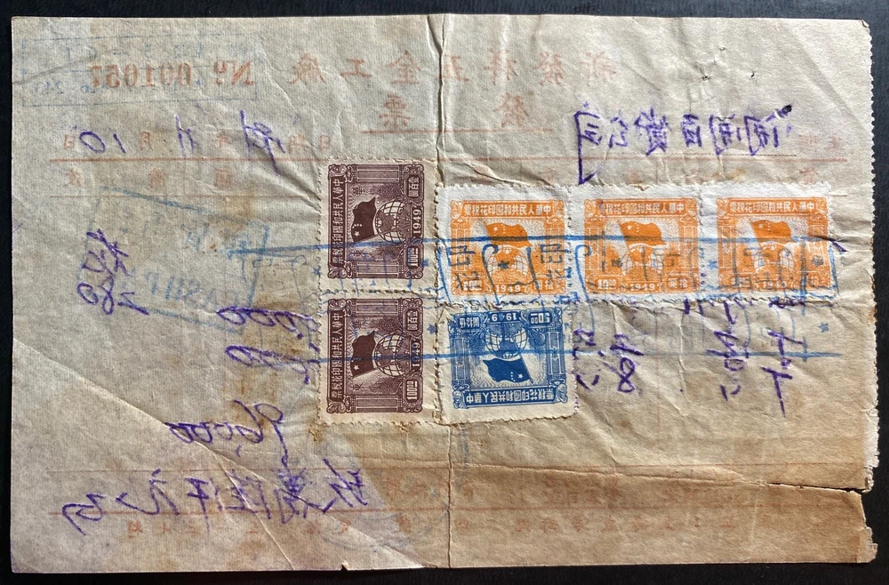 Up for auction is a beautiful revenue stamp receipt invoice cover from China . Great markings and cancels. In Good condition. Priced to sell. Postmarked in Chinese but dated in 1951 .Nice postal History.