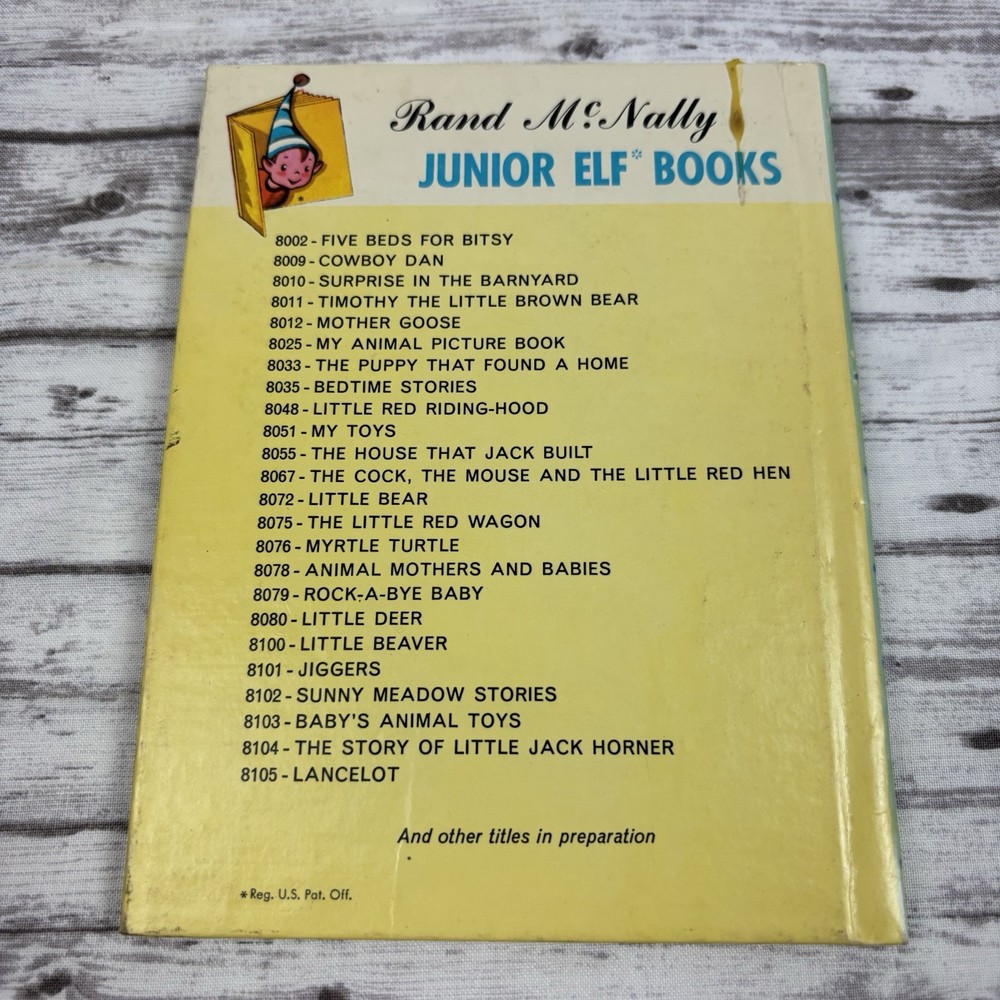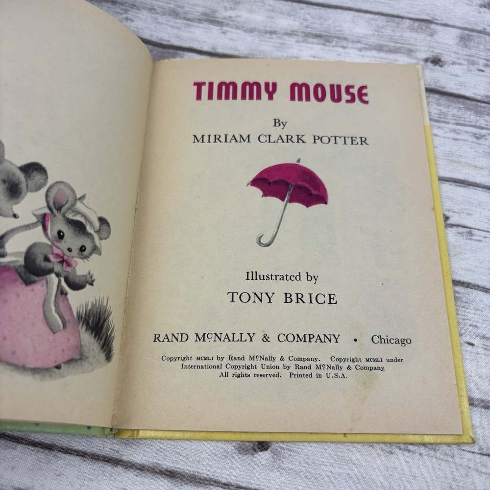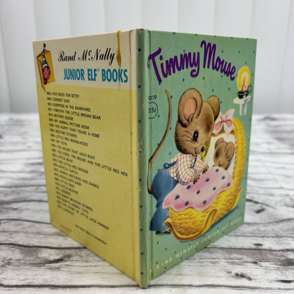 The product is a vintage 1951 Rand McNally Jr elf book titled "Timmy Mouse." It is a collectible item for fans of antiquarian books, especially those interested in children's literature. The book is sure to hold sentimental value for collectors or those nostalgic for the classic stories and illustrations of yesteryears.