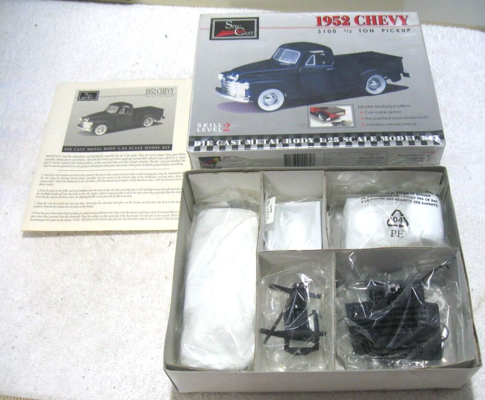 HELLO YOU ARE BIDDING ON A 1952 CHEVY 3100 1/2 TON PICKUP SPEC CAST DIE CAST METAL BODY BANK 1/25 SCALE MODEL KIT NICE AS SEEN #S57 1/25 PLEASE LOOK AT MY OTHER AUCTIONS I WILL GLADLY COMBINE ACTUAL SHIPPING PLEASE WAIT FOR AN INVOICE OR I CAN NOT COMBINE