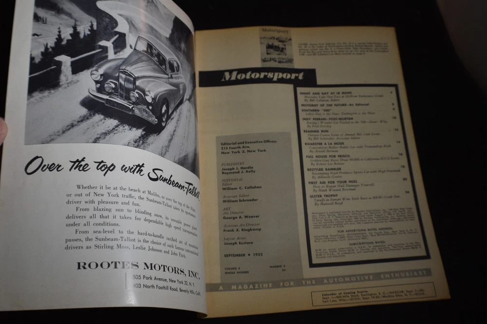 September 1952 Motorsport Magazine *Indy Ferrari*Le Mans*Restyled Rambler* See photos for condition details. Due to high loss in shipping to certain countries, insurance is required for shipping to a location that does not provide tracking If purchasing multiple items, please do so by using the Ebay Shopping Cart, then select "Request Total for Seller" for the corrected shipping on a new invoice. Do not pay for the items before receiving this corrected invoice.